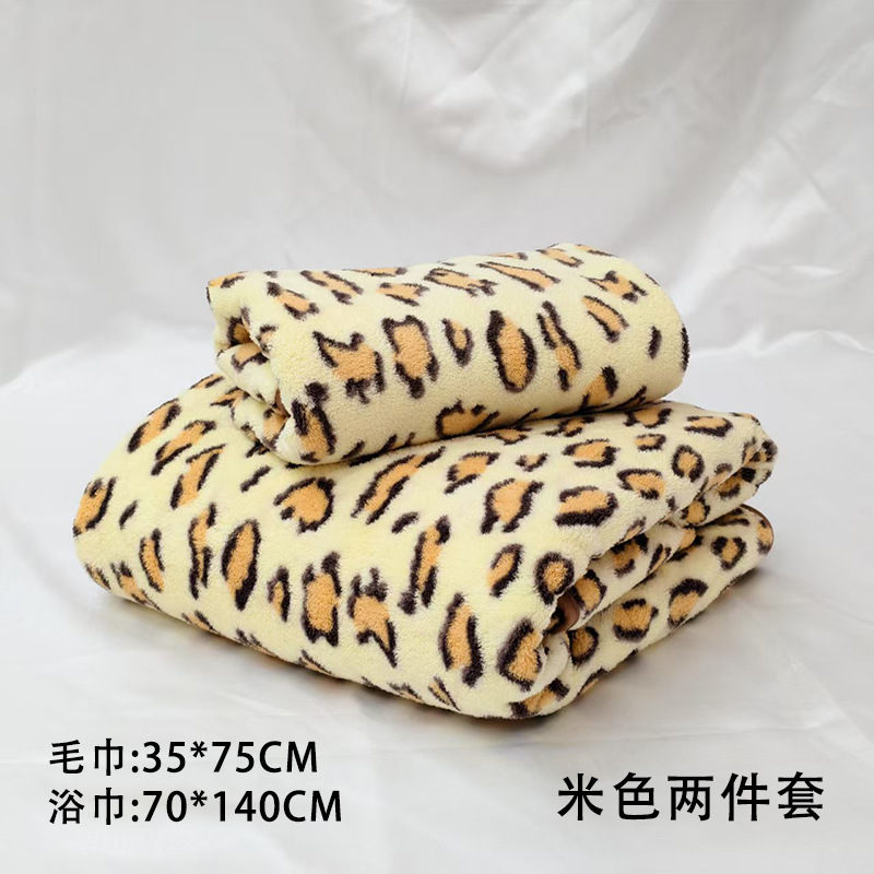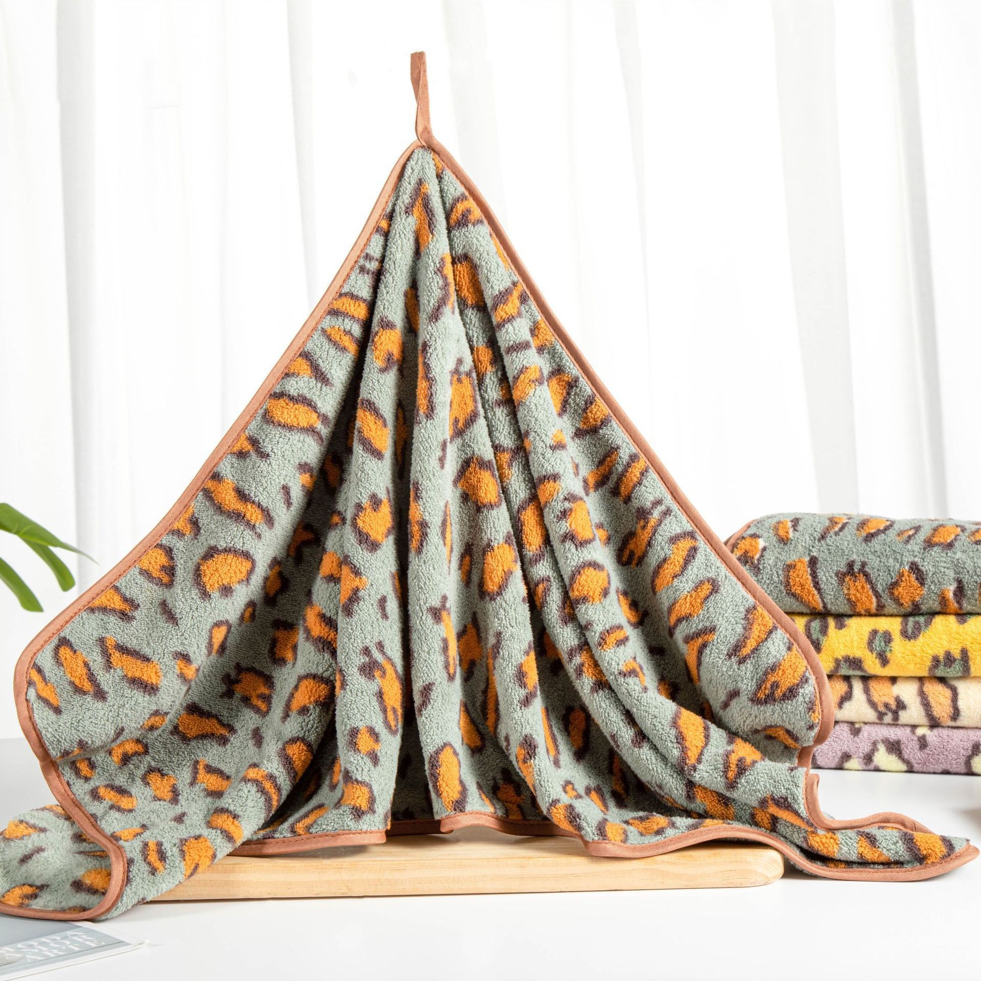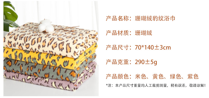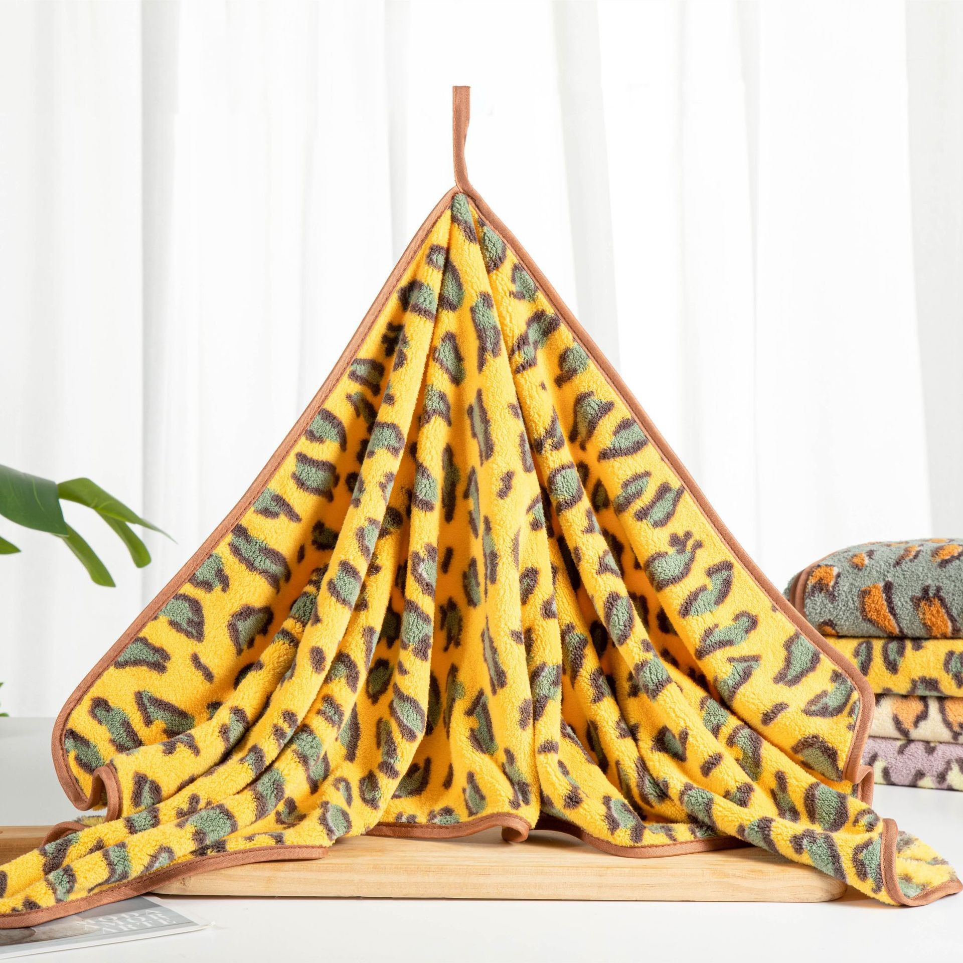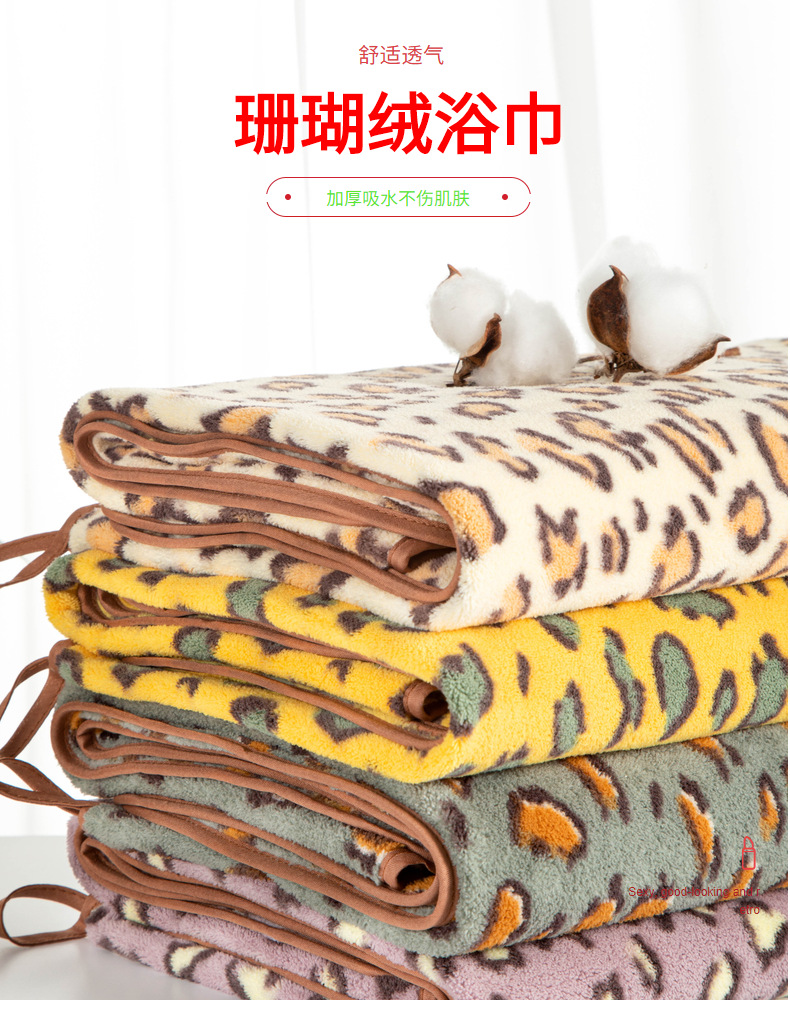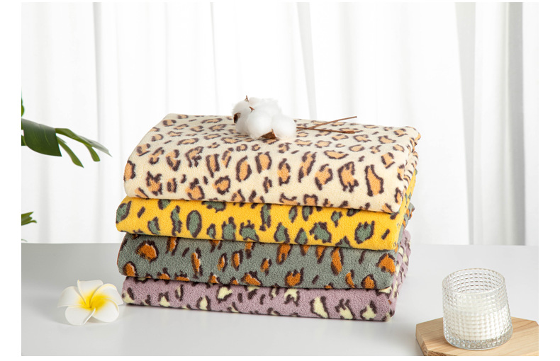 공장 도매 매달려 산호 양털 수건 성인 레오파드 무늬 목욕 수건 가정용 수건 사각 수건 부드러운 흡수 걸이 수건스토어 가기