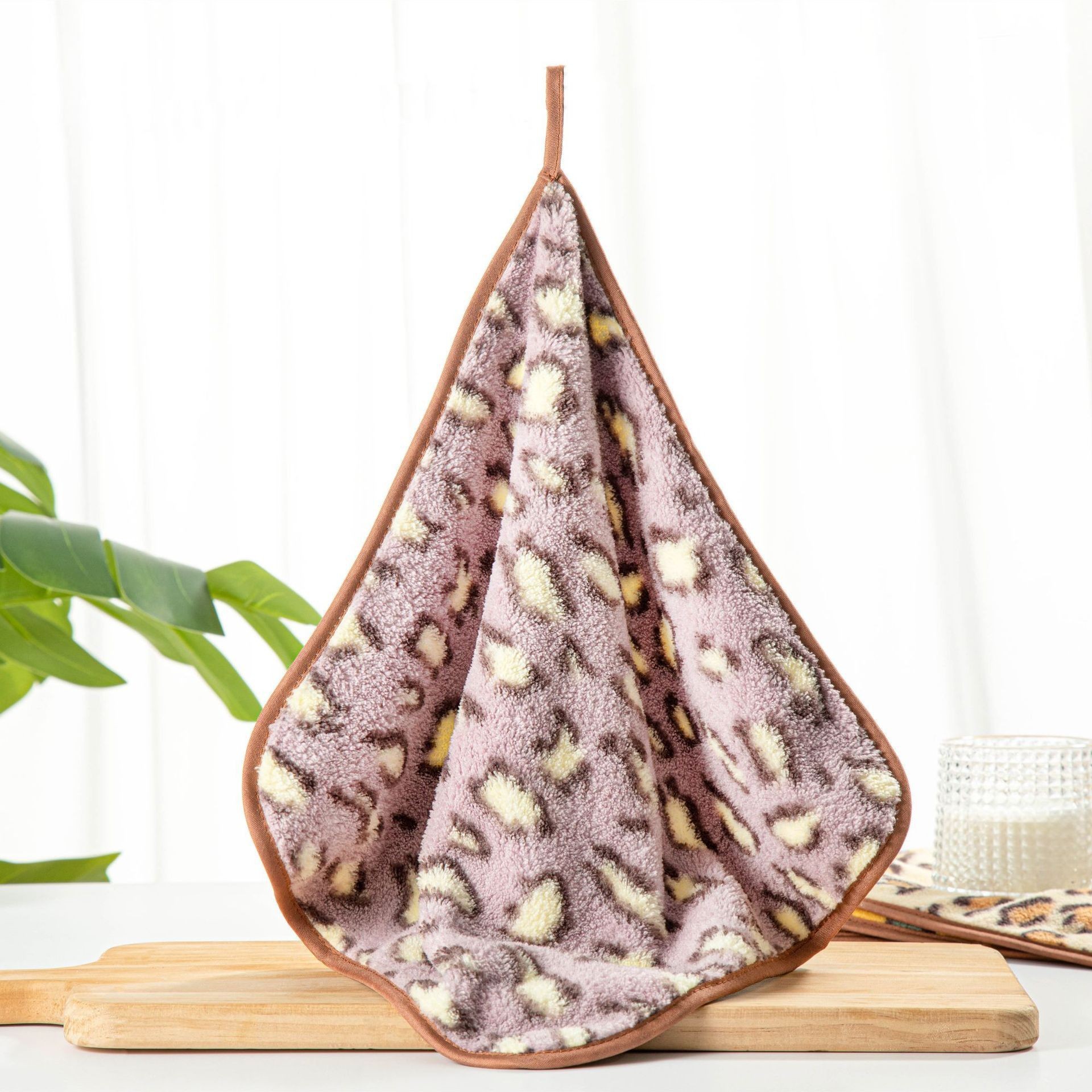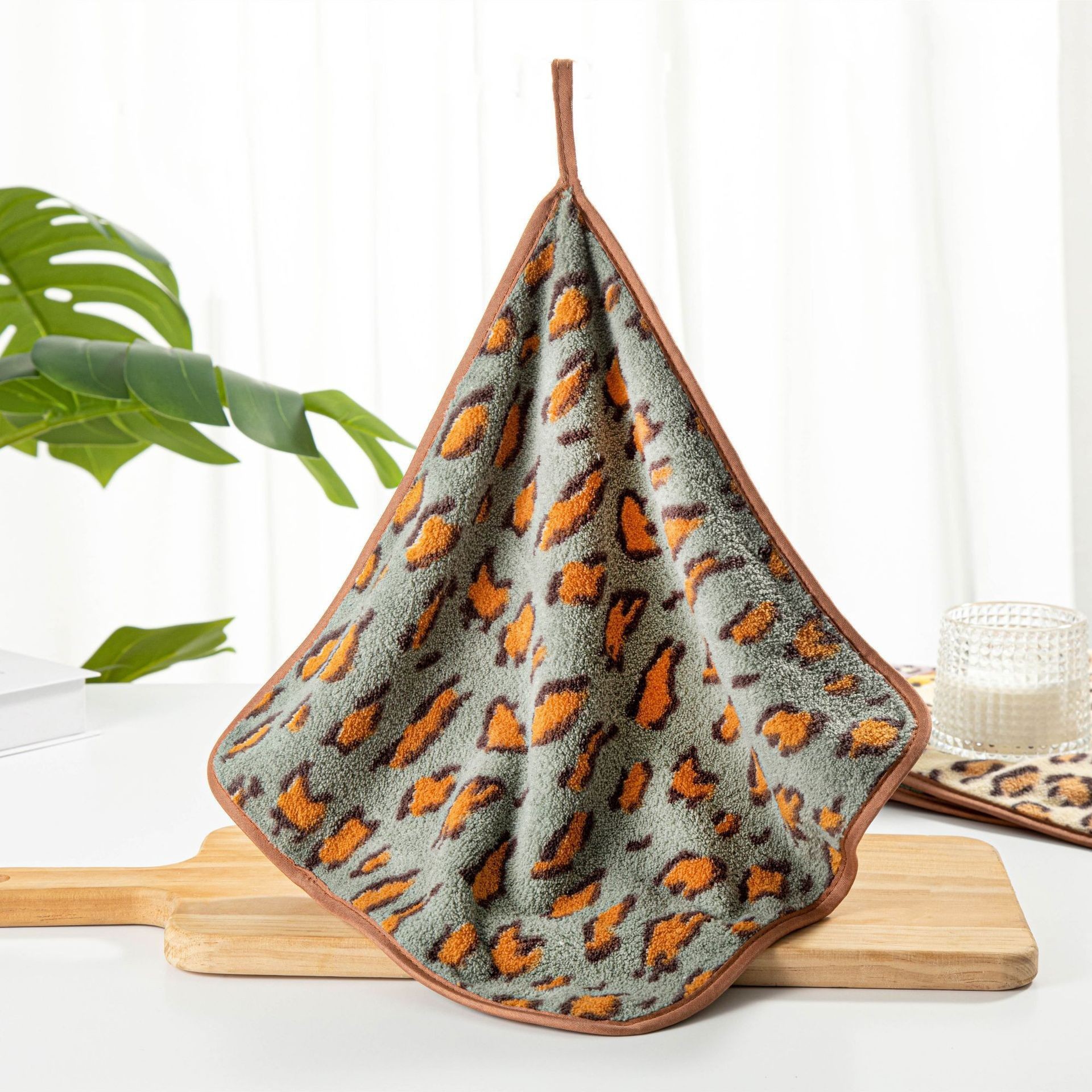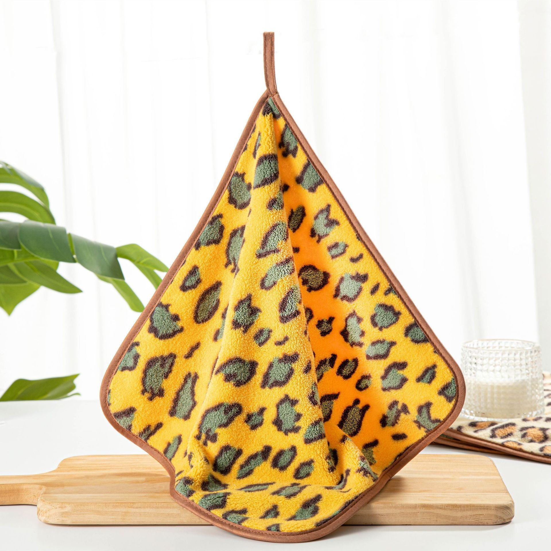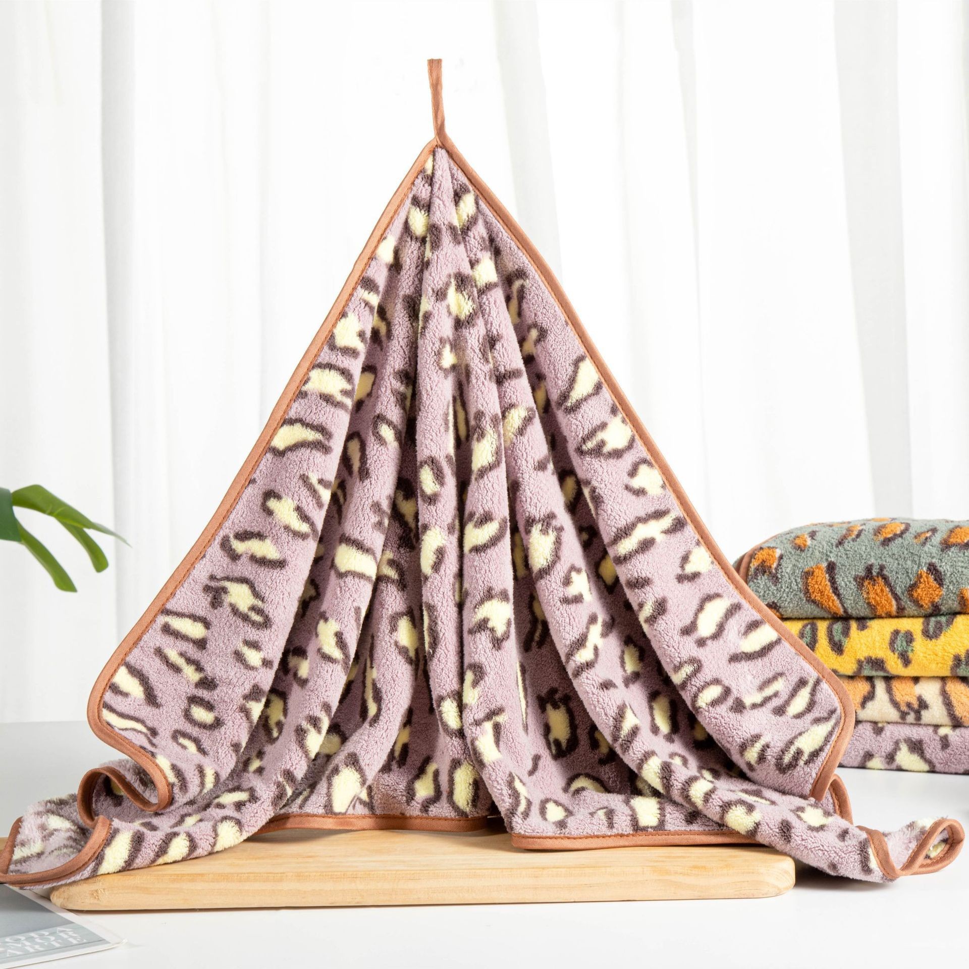 공장 도매 매달려 산호 양털 수건 성인 레오파드 무늬 목욕 수건 가정용 수건 사각 수건 부드러운 흡수 걸이 수건