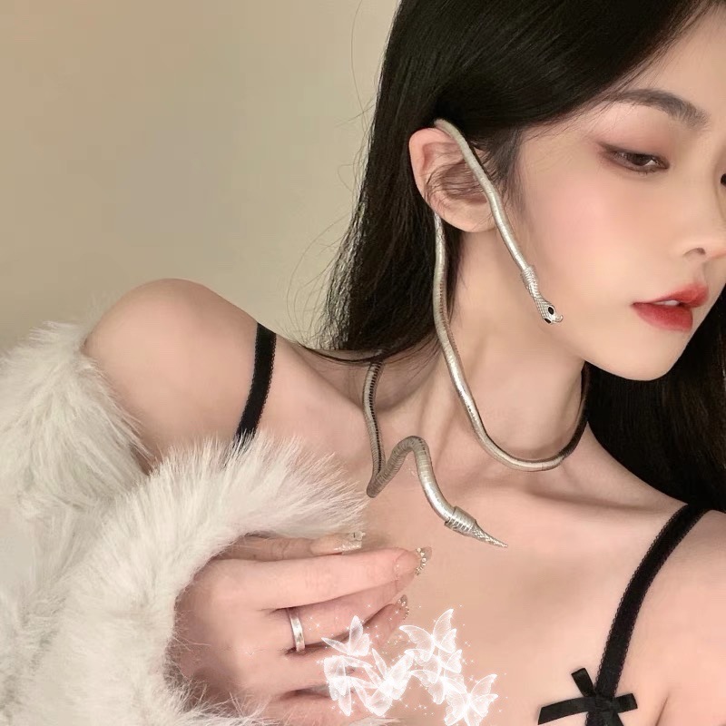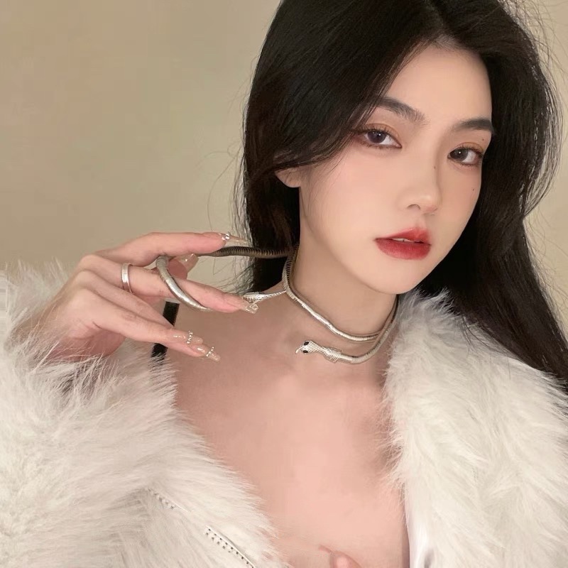 초커 목걸이 여성 오목한 모양 실버 뱀 모양의 과장된 목 체인 쇄골 체인 디자인 고급 액세서리 개성 칼라스토어 가기