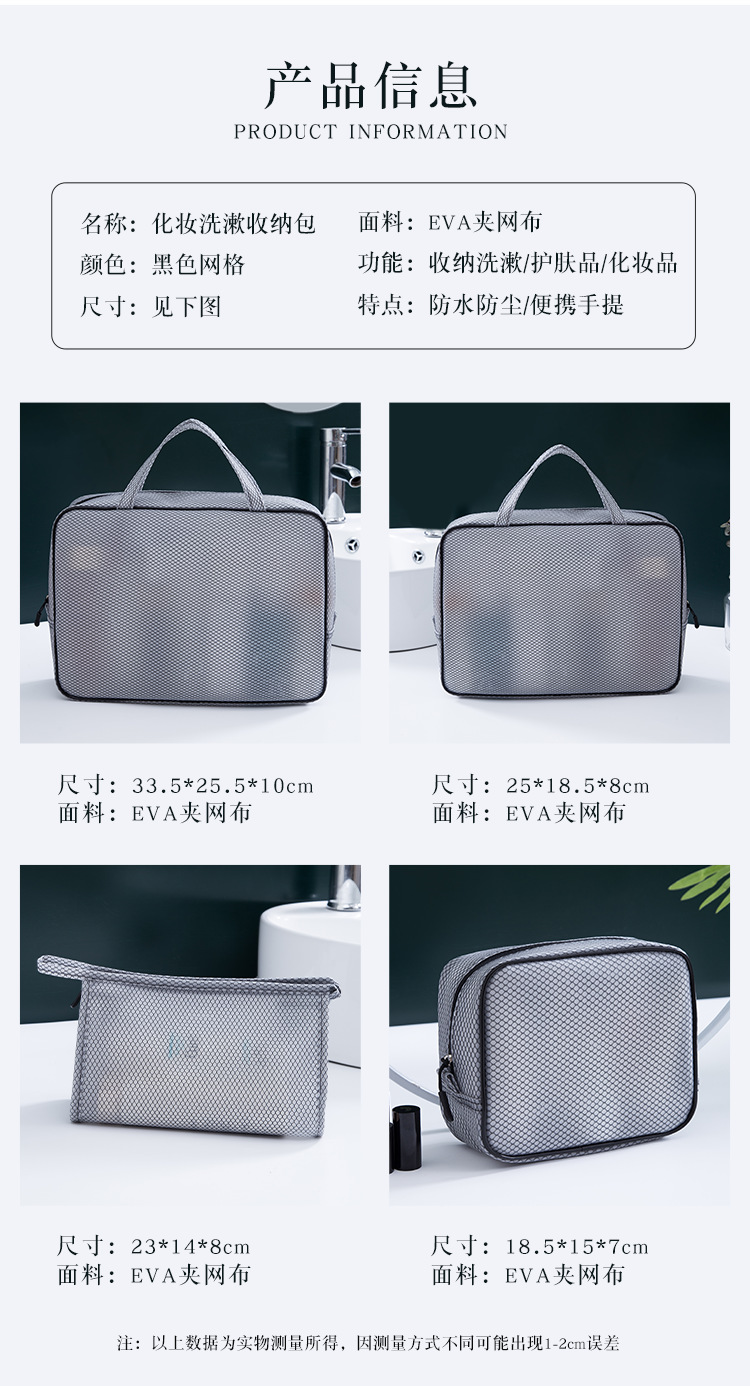 单个重量:大号手提175g,中号手提118g,无手提方包76g,三角包65g,浴室包56g