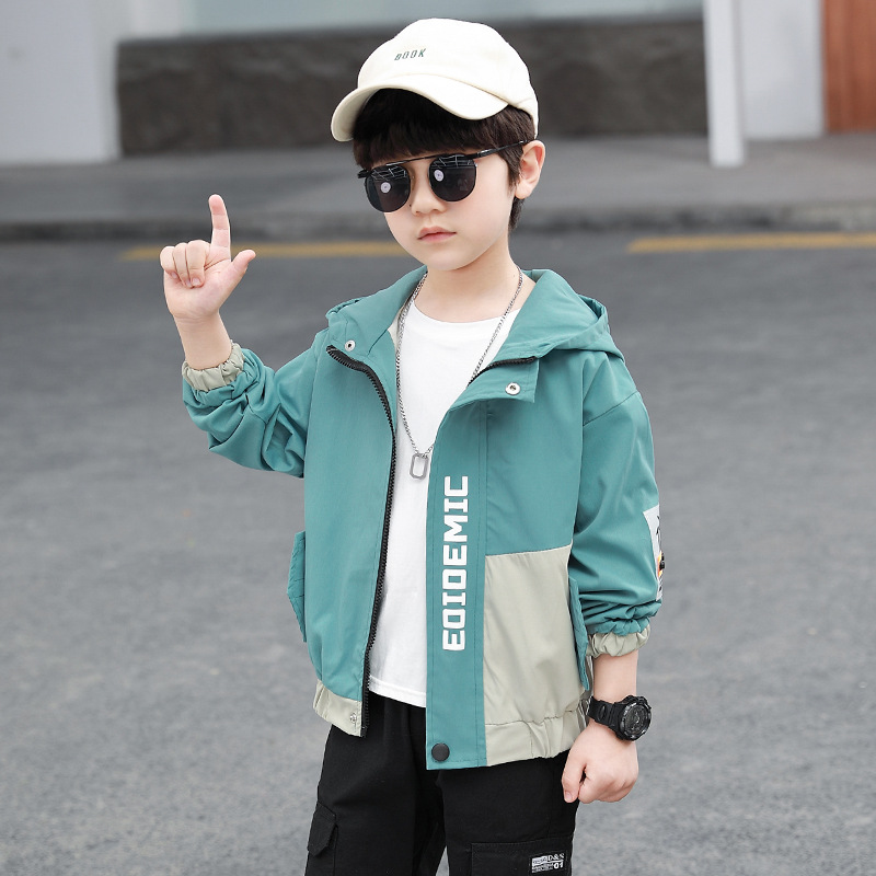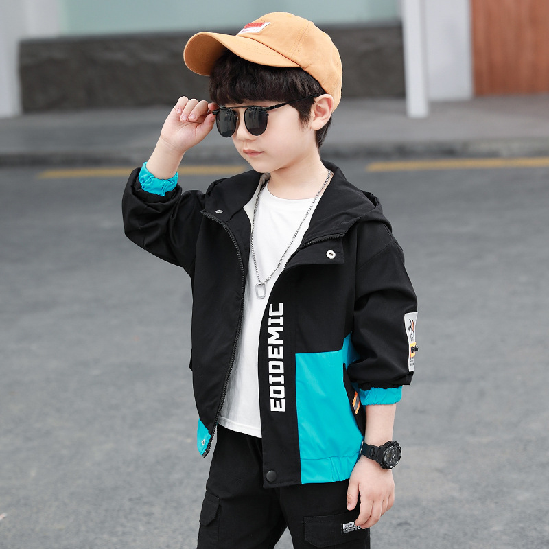 아동복 봄 재킷 2024 신상 남아용 레터링 긴팔 후드 재킷 스타일리시 재킷 도매