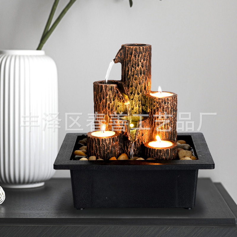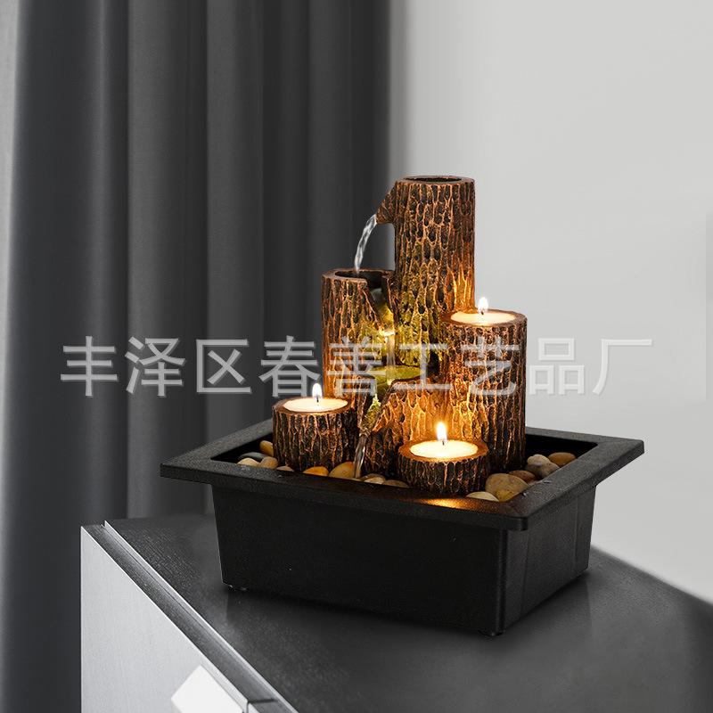 아마존 크로스 보더 핫 세일 데스크탑 분수 양초 흐르는 물 장식품 사무실 풍수 장식품 수지 장식품스토어 가기