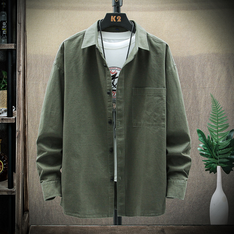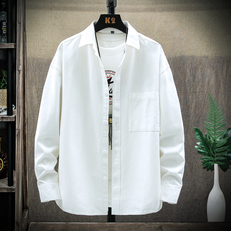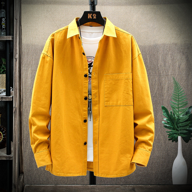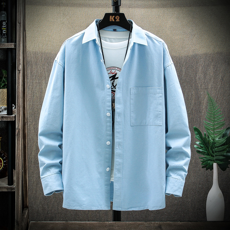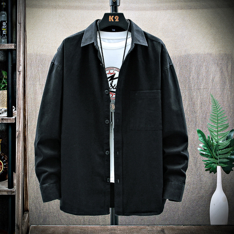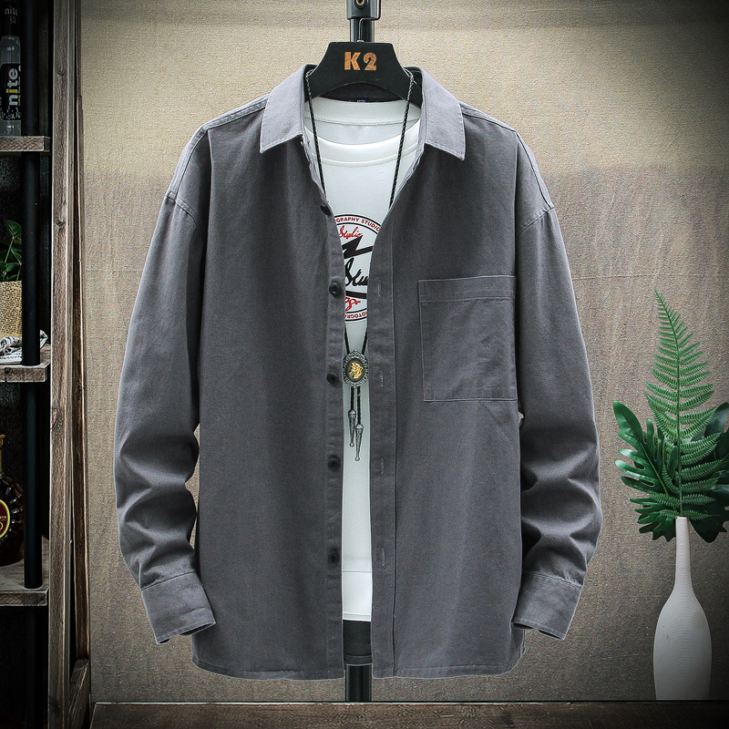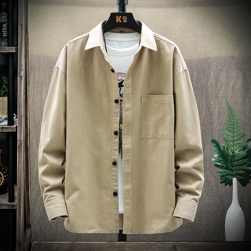 순면 일본 스타일 작업복 셔츠 남성용 긴팔 순면 상의 청년 패션 캐주얼 루즈핏 재킷 학생 셔츠 트렌디스토어 가기