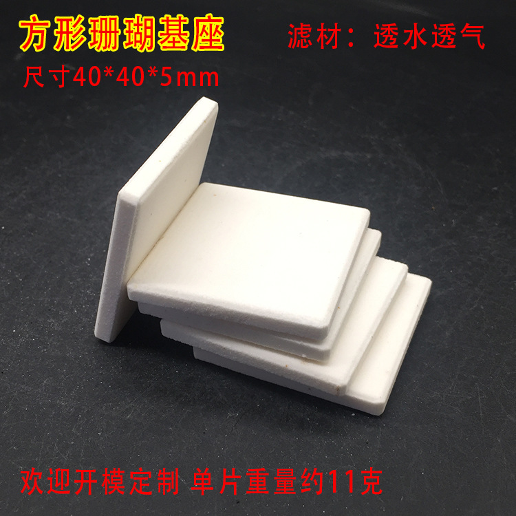 白色珊瑚基座,滤材材质,透气透水,尺寸40*40*5mm,单片重量约11克,适合各种珊瑚生长繁殖,产品出厂价,不包运费与税,欢迎客户咨询定制...