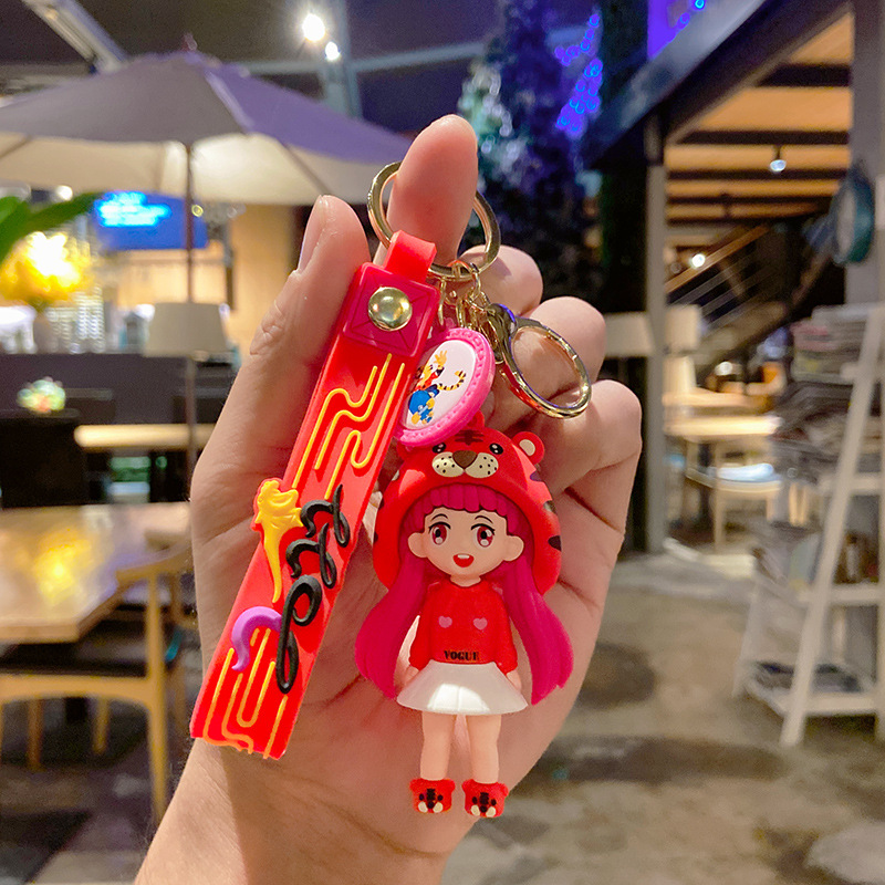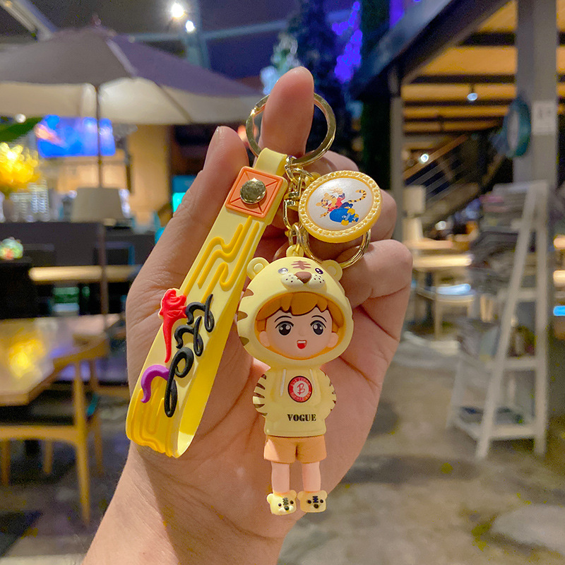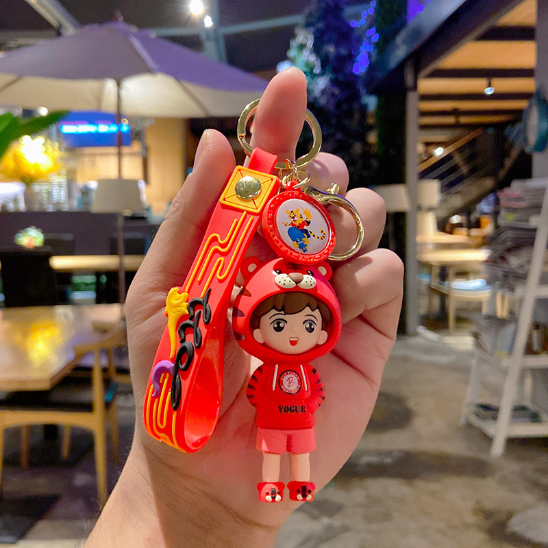 소년과 소녀 창조적 인 열쇠 고리 호랑이 가방 교수형 열쇠 펜던트 커플 인형 호랑이 열쇠 고리의 해