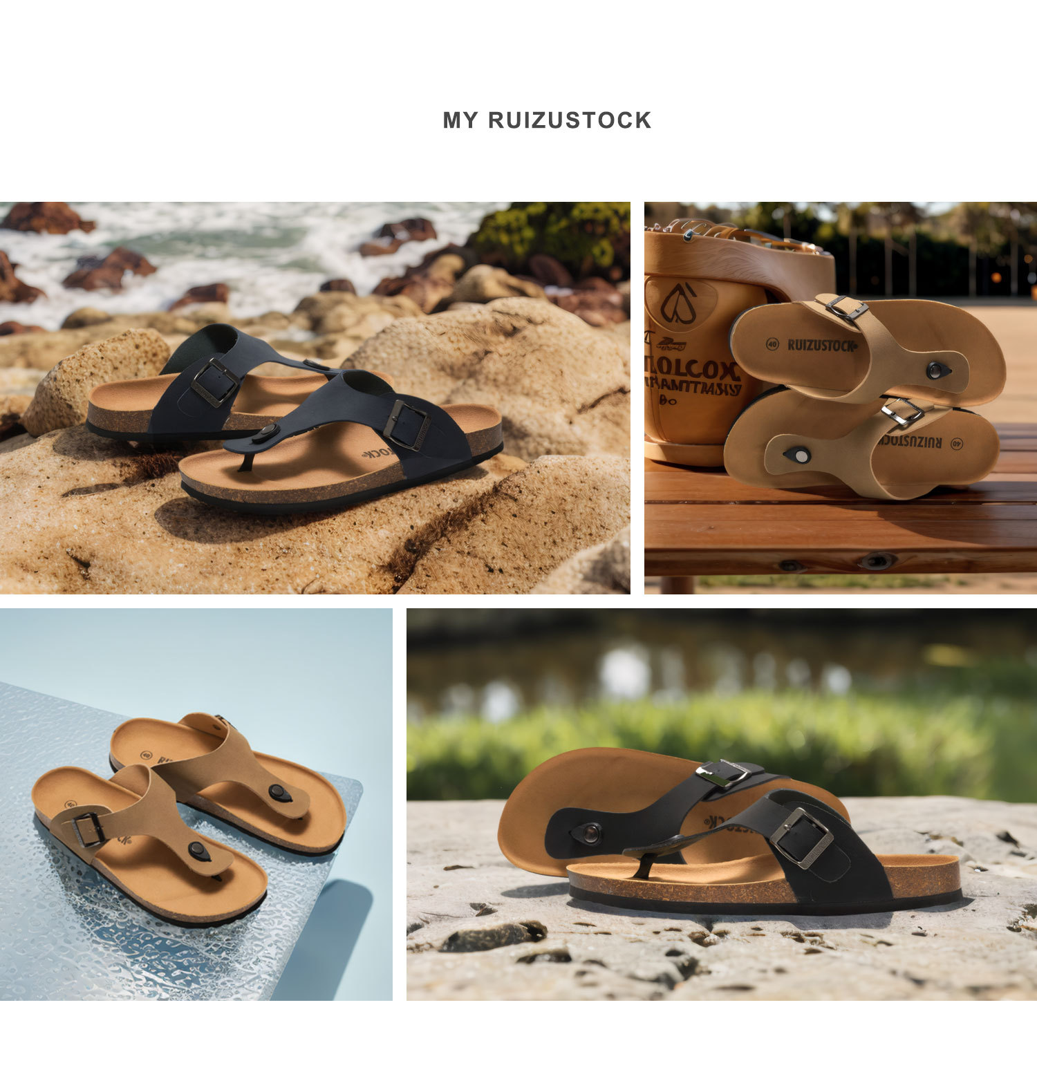 Ruizu 2025 새로운 봄, 여름 남성 코르크 슬리퍼 여성 플립 플롭 학생 해변 신발 마르카 샌들 유행스토어 가기