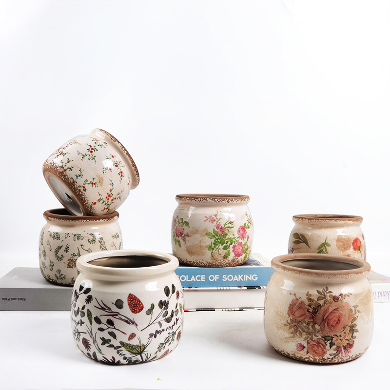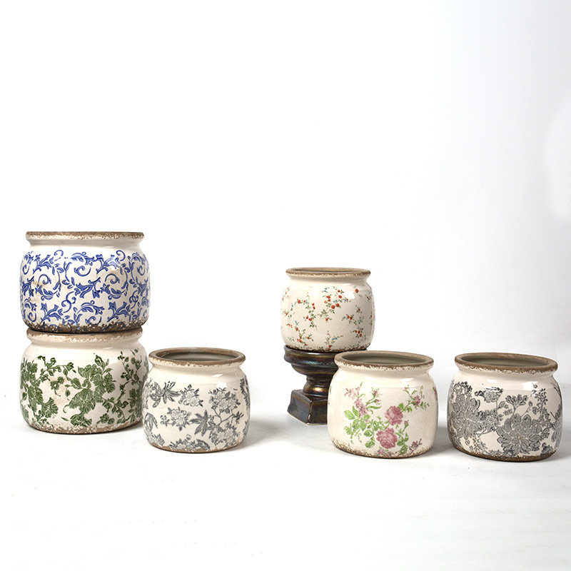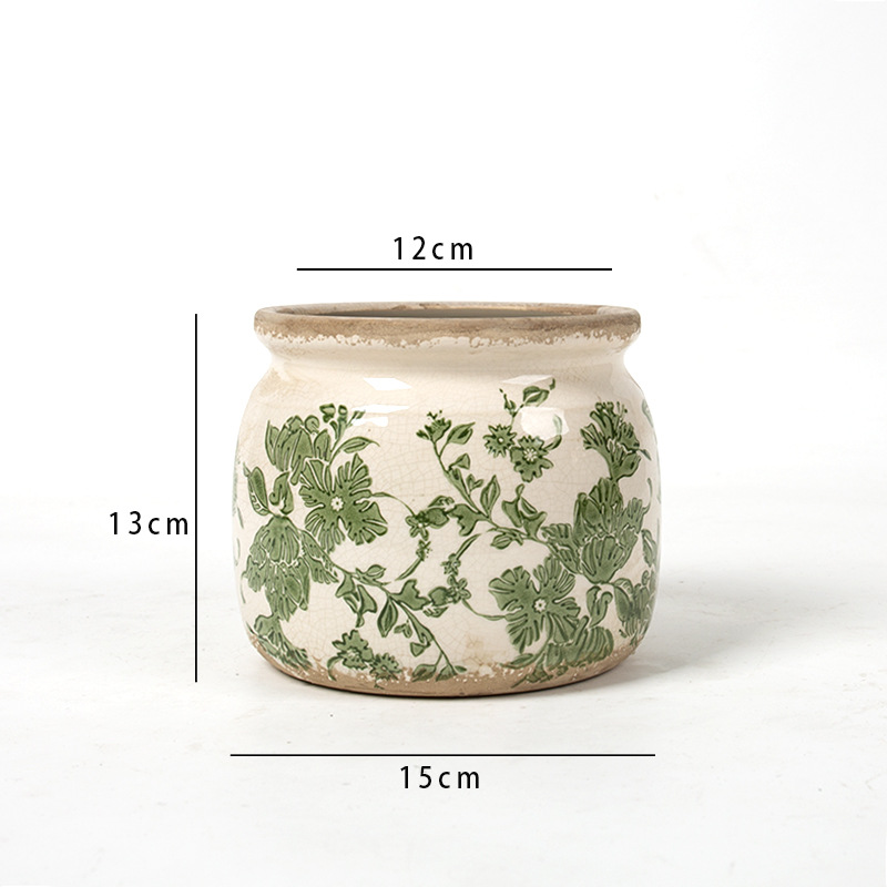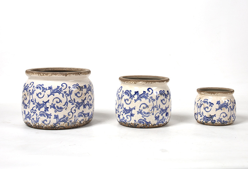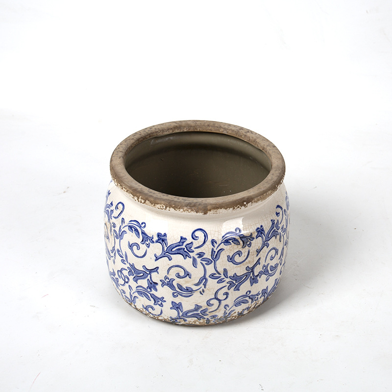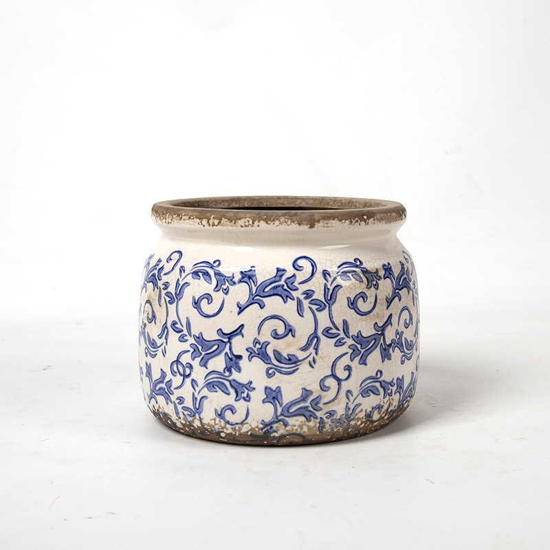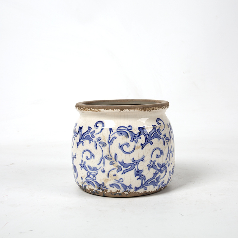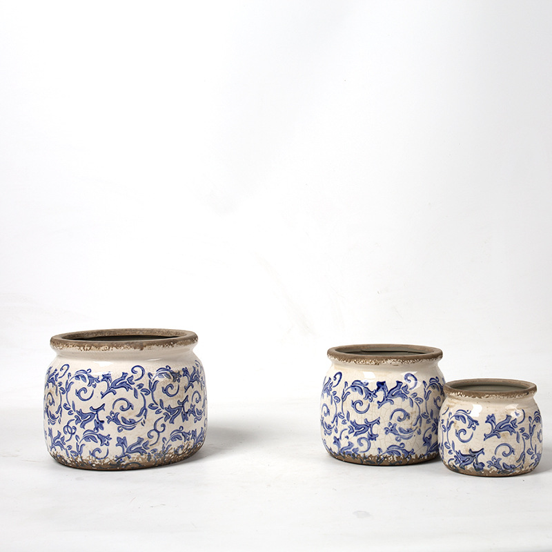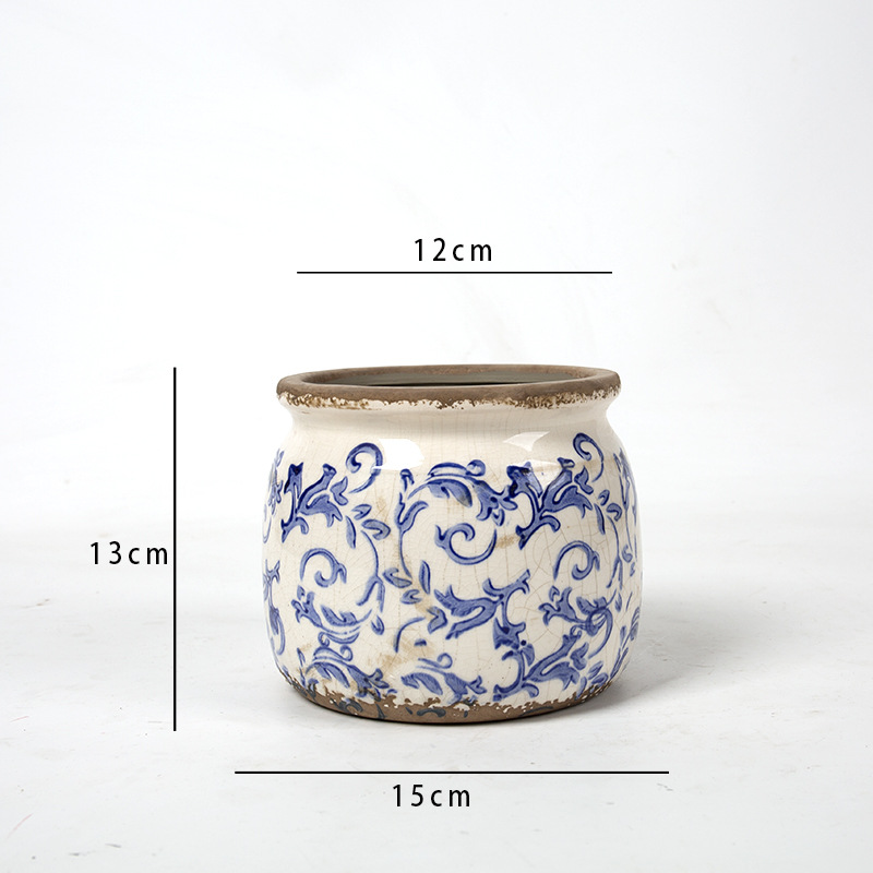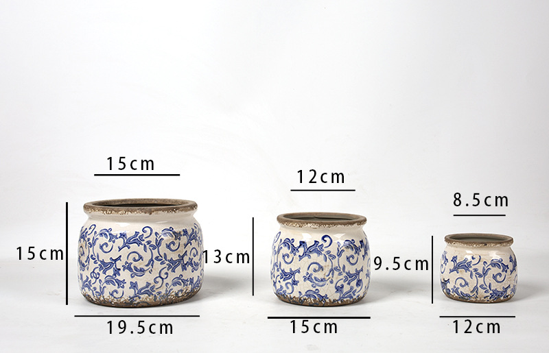 한국식 클래식 복고풍 오래된 도자기 꽃병 화분 녹색 식물 냄비 도자기 화분 파란색과 흰색 냄비 클래식 홈 소프트 의상스토어 가기