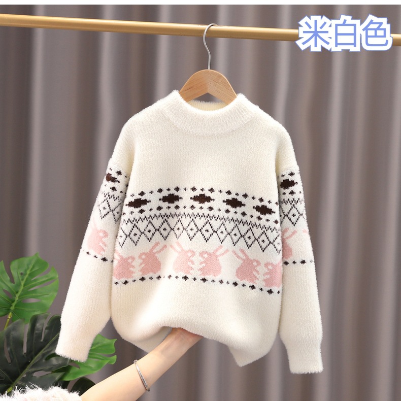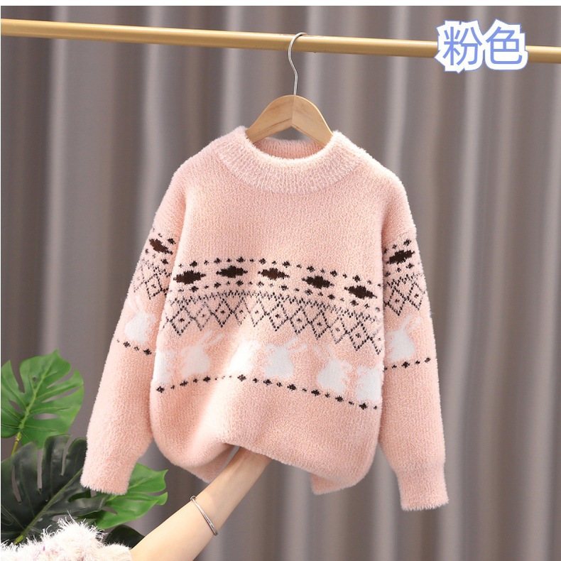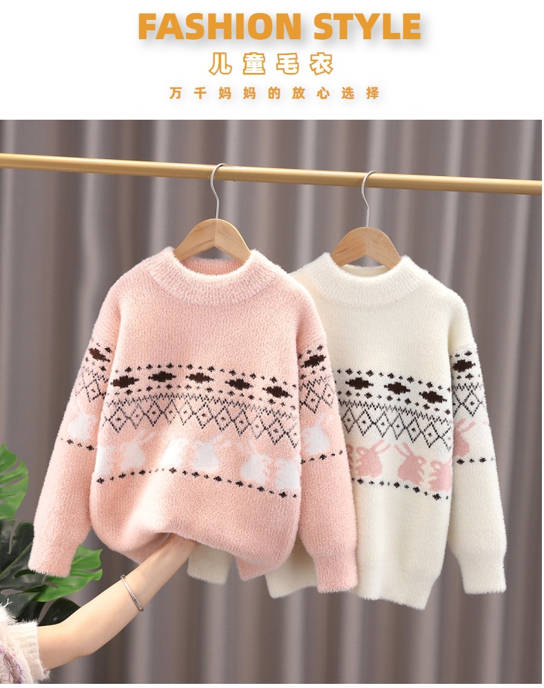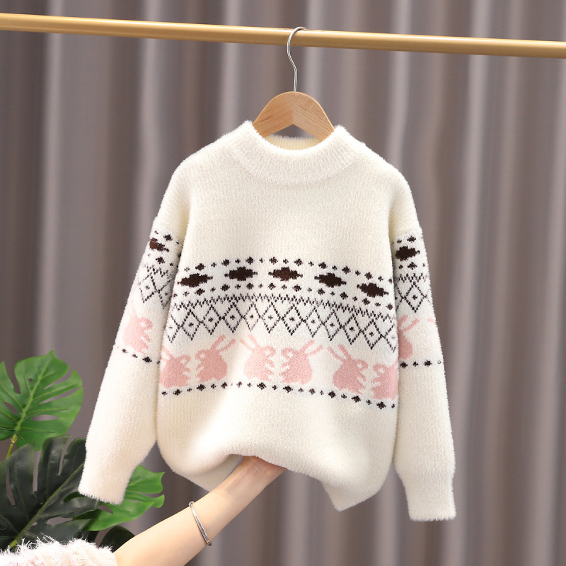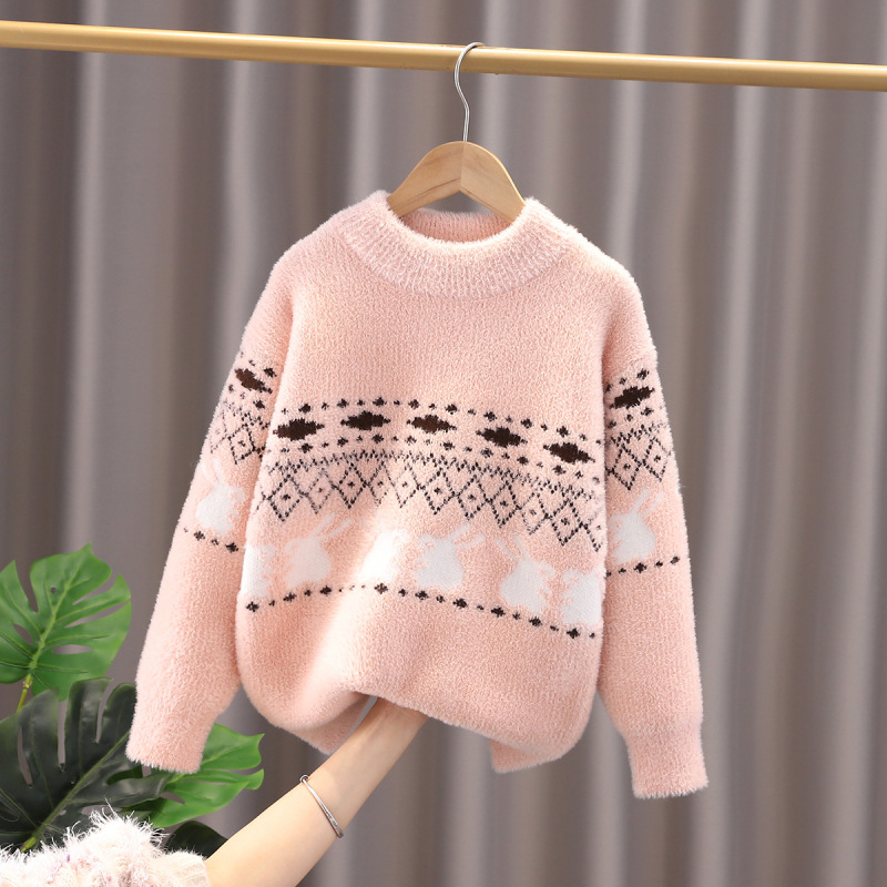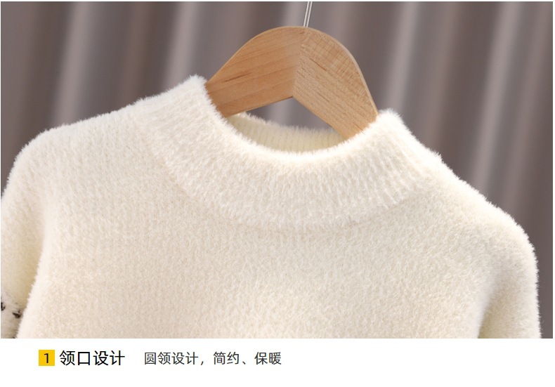여아용 스웨터, 밍크 벨벳 스웨터, 중대형 어린이용 라운드넥 가을 겨울 두꺼운 어린이용 보온 베이스 셔츠, 만화 귀여운 디자인스토어 가기