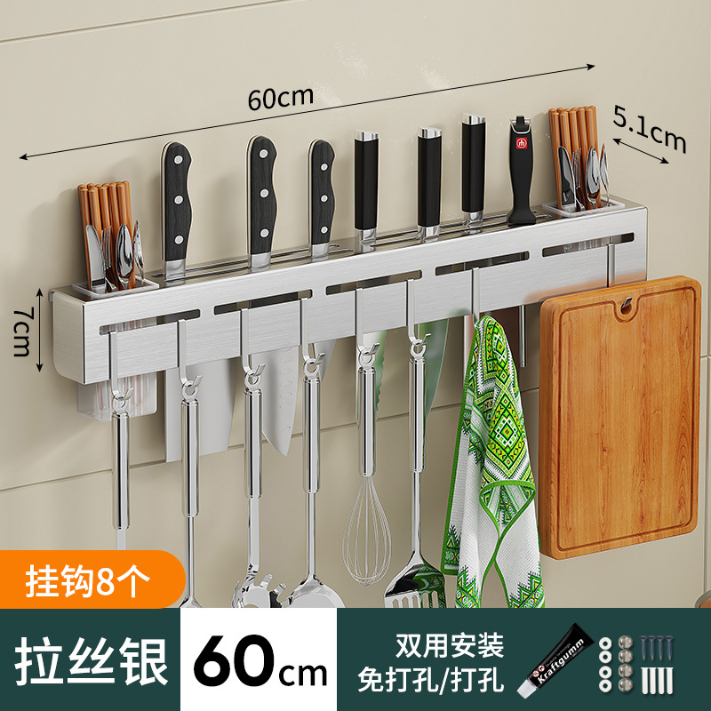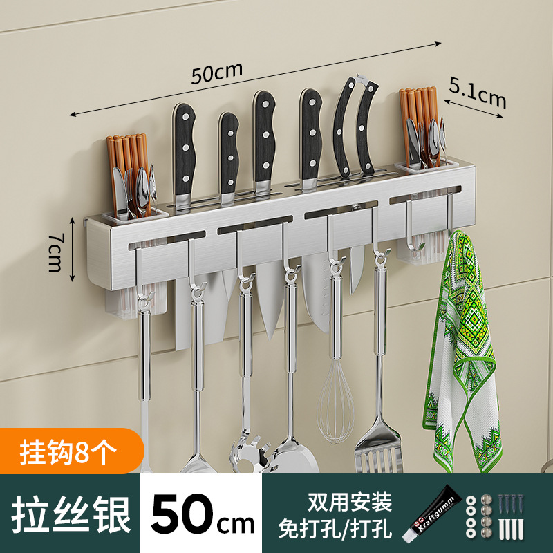 크로스 보더 스테인레스 스틸 나이프 홀더 천공되지 않은 벽걸이 형 주방 랙 다기능 젓가락 나이프 보관 랙 도매스토어 가기