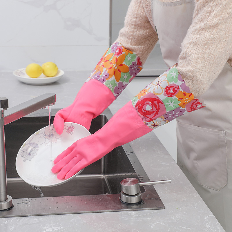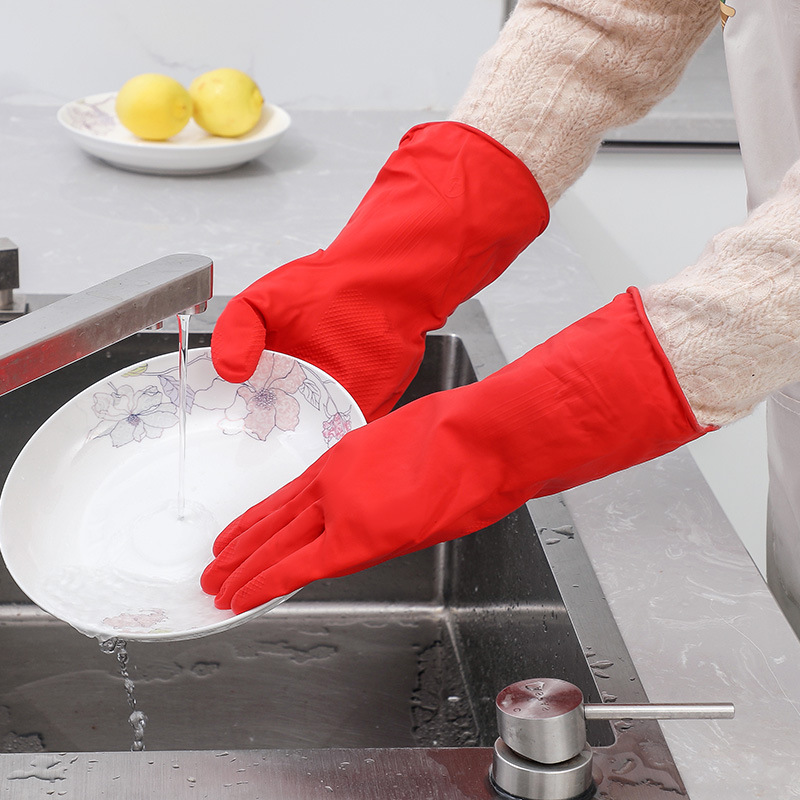 주방 청소 식기 세척 장갑 겨울 두꺼운 세탁 장갑 길어진 기모 방수 고무 가정용 장갑