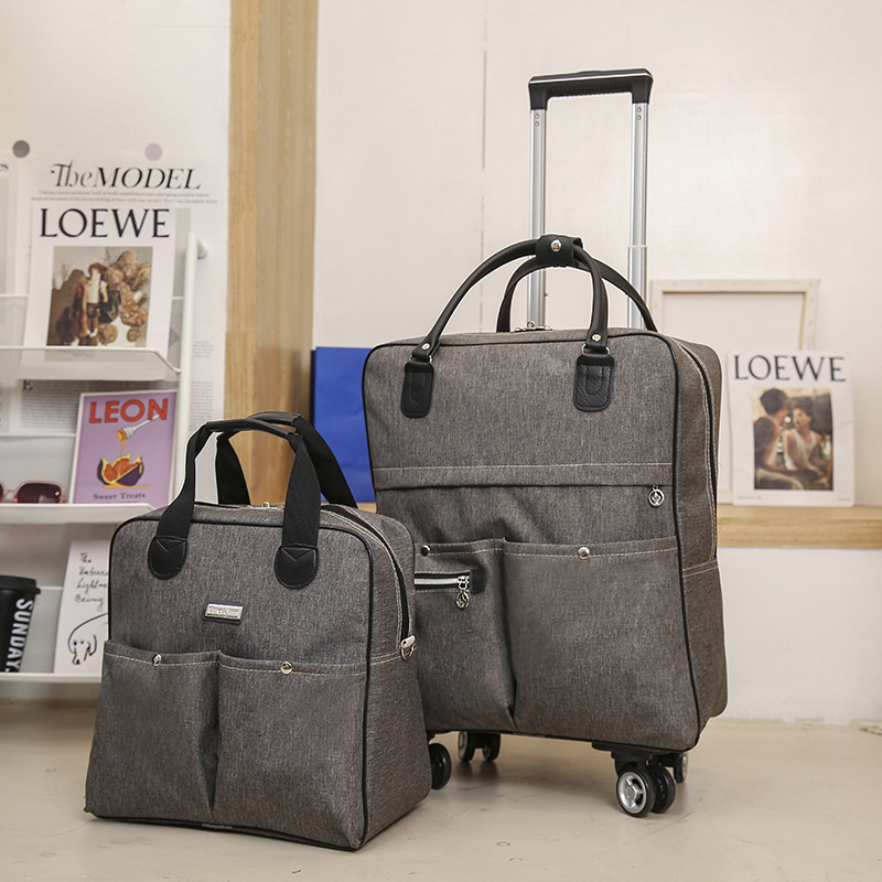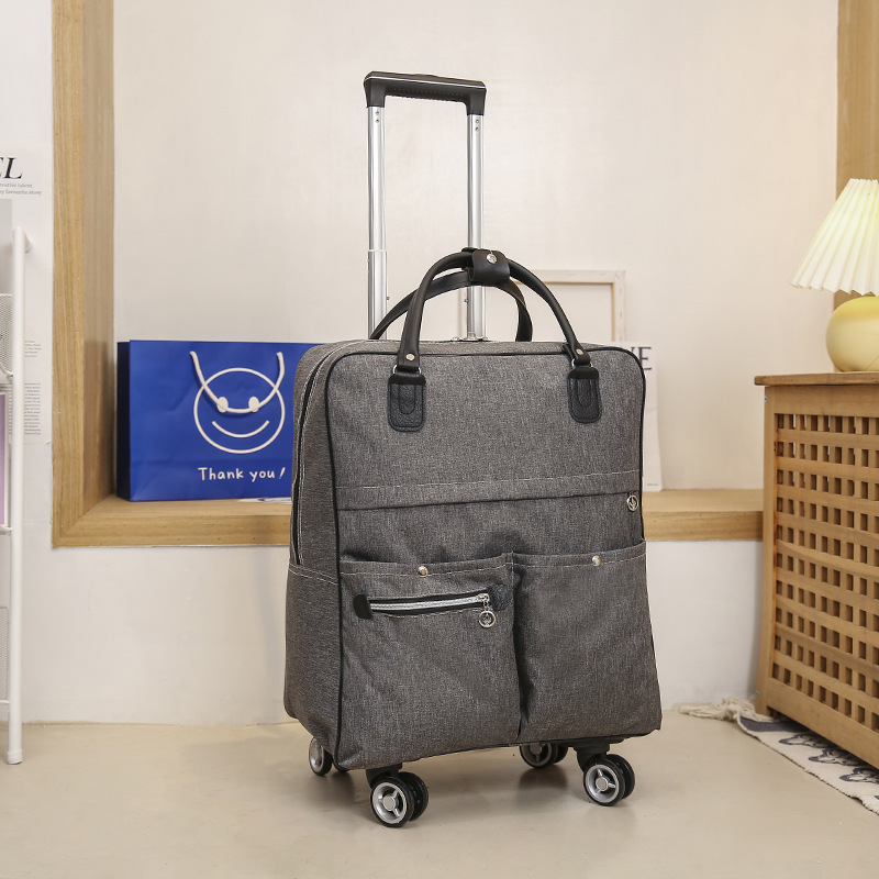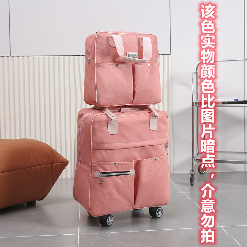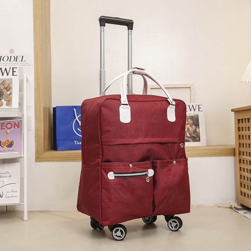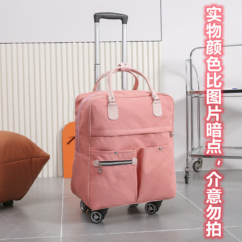 트롤리 백 새로운 여성용 대용량 수하물 가방 휴대용 수하물 가방 접이식 여행 보관 가방 유니버설 휠 인쇄 로고스토어 가기