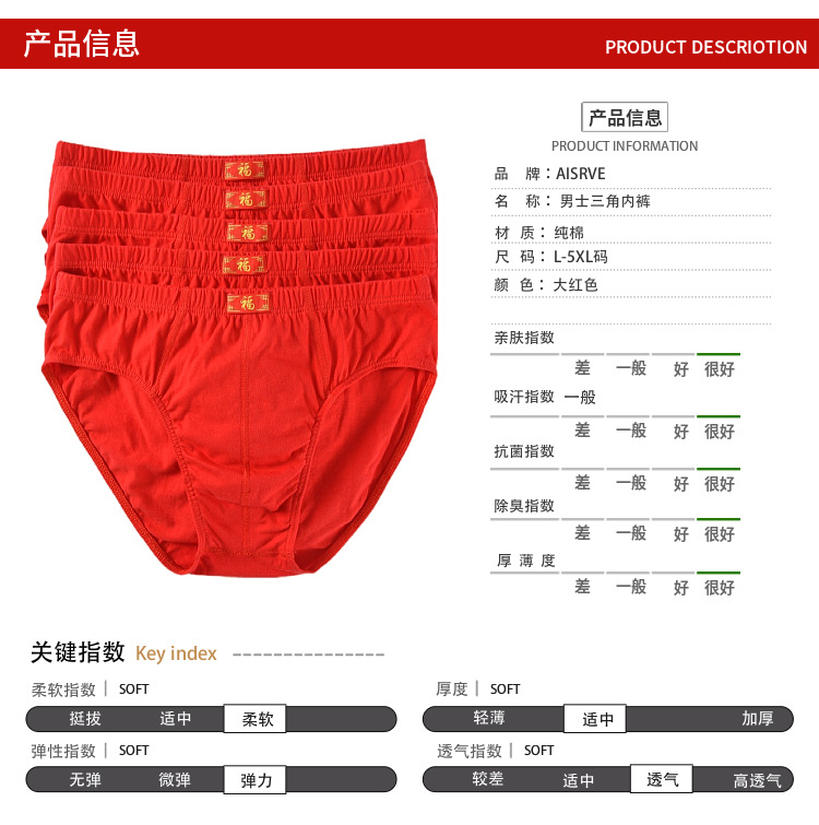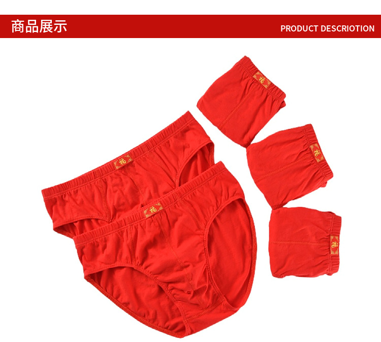 Bermingnian 남자의 속옷 남자의 순면 플러스 사이즈 팬티 중간 허리 느슨한 통기성 면 큰 빨간 짧은 바지