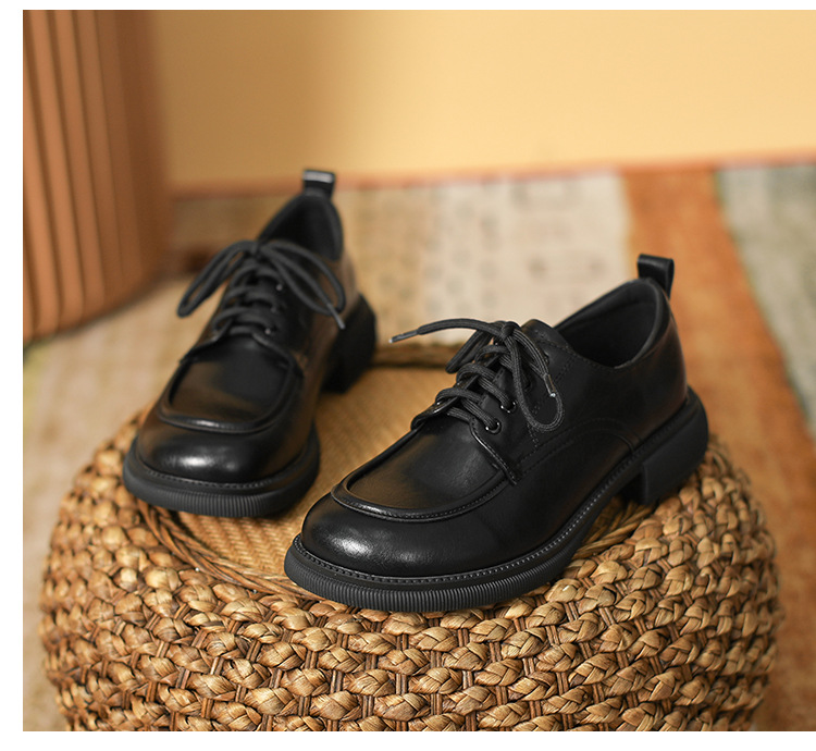 정품 가죽 로퍼 2024 년 봄과 여름 새로운 평면 싱글 레이어 신발 슬립 온 올 매치 소프트 하단 영국 레이스 업 가죽 신발스토어 가기