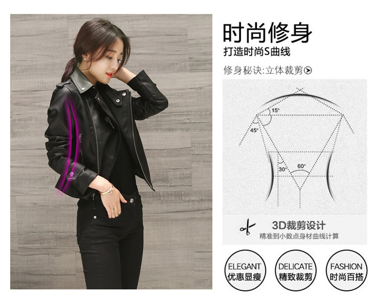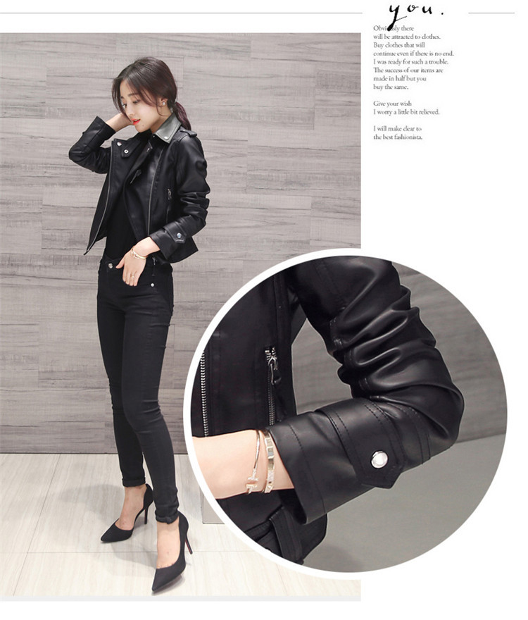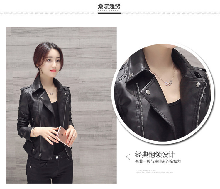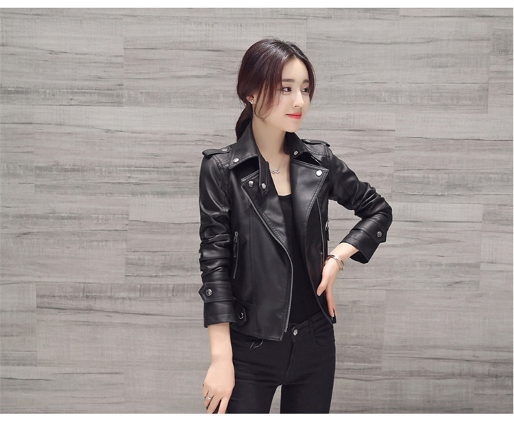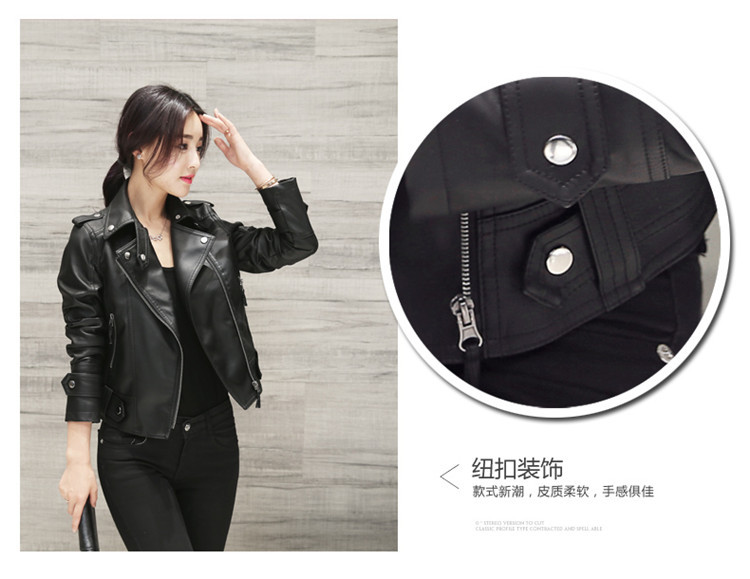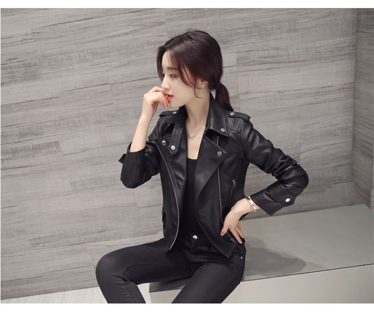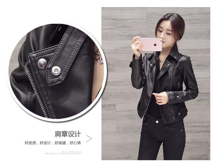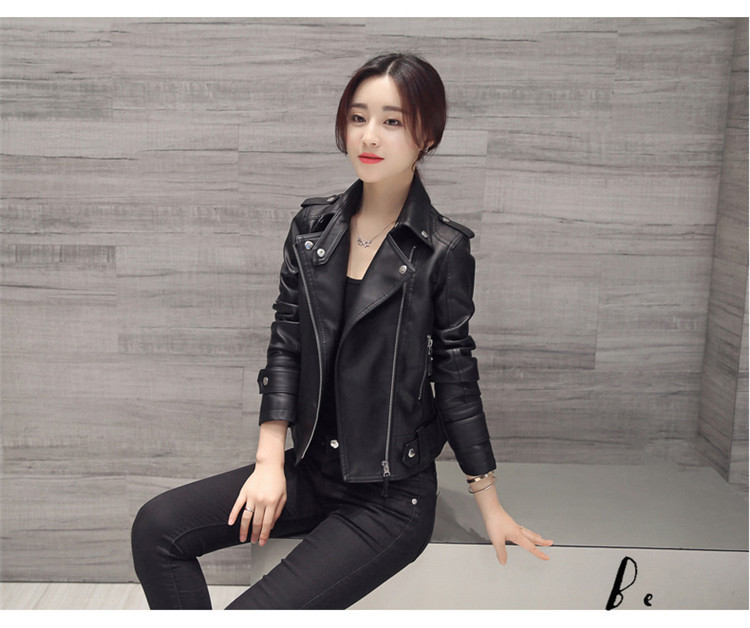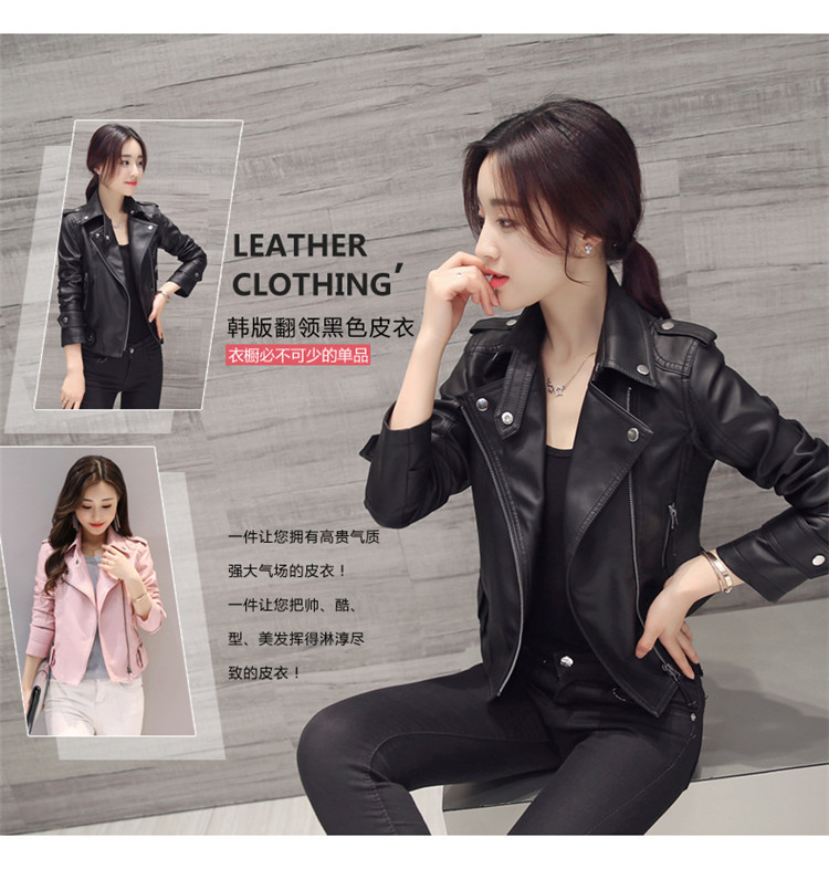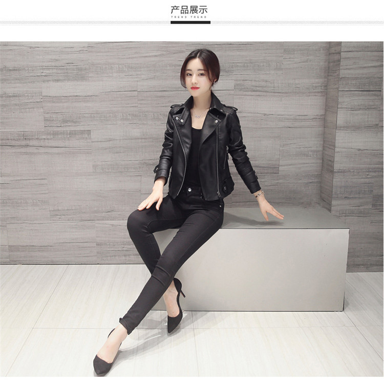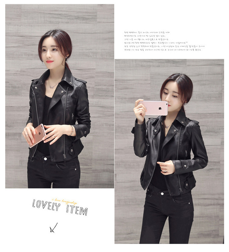 가죽 자켓 여성용 2022 새로운 봄과 가을 여성용 짧은 슬림핏 오토바이 가죽 자켓 여성용 한국 스타일 퓨
