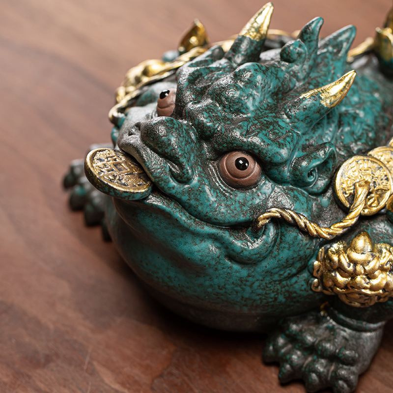 황금 두꺼비 장식품 행운의 세 다리 두꺼비 세라믹 황금 두꺼비 가게 오프닝 선물 홈 거실 장식