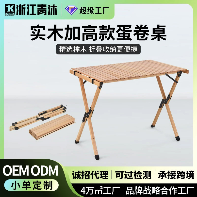Qingmu 맞춤형 야외 단단한 나무 계란 롤 테이블 야외 캠핑 휴대용 접이식 테이블과 의자 강화 홈 식탁