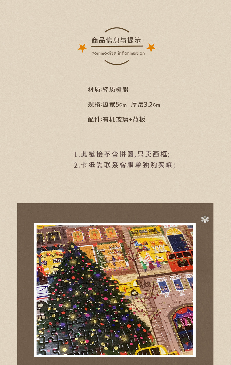 圣诞冬灯拼图相框galison画框框架挂墙装裱500 1000片70*50拼图框