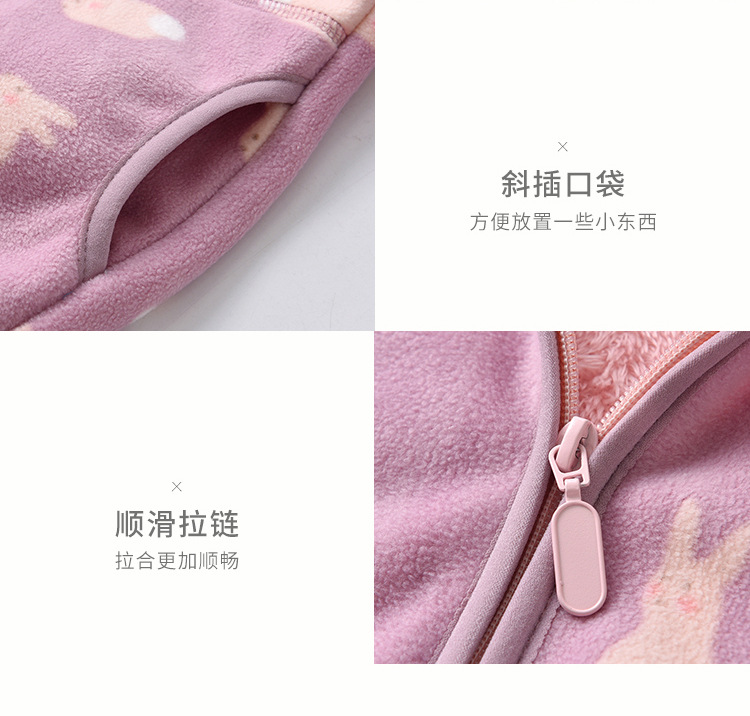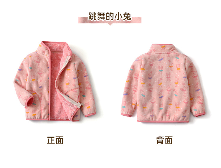 2025 가을 겨울 신상 아기 폴라 플리스 재킷 여아용 귀여운 프린트 아기 핑크 스탠드 칼라 재킷 wy1088스토어 가기
