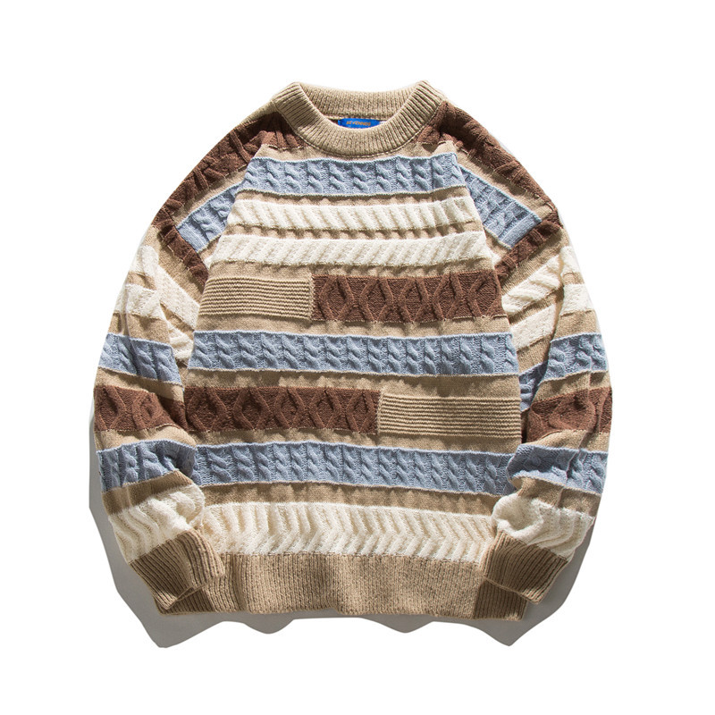 스타일 레코드 크루넥 스웨터 남자의 가을과 겨울 캐주얼 코트 웨이브 패턴 스티치 트렌디 브랜드 스웨터 2021 새로운 니트 스웨터스토어 가기