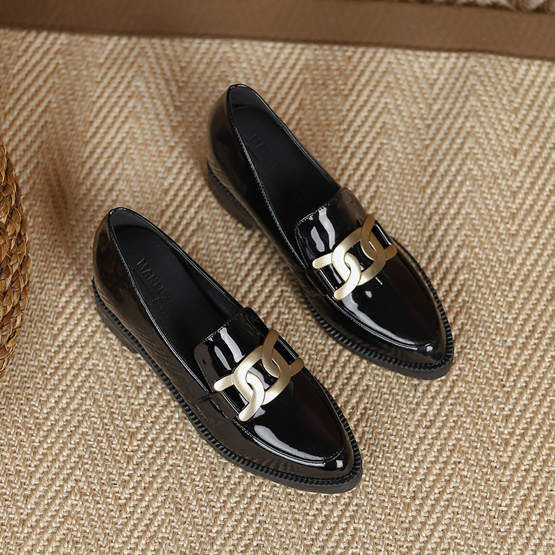 작은 가죽 신발 여성 영국 스타일 2022 새로운 인기 봄과 가을 복고풍 두꺼운 발 뒤꿈치 뾰족한 부드러운 단독 높이 신발 여성스토어 가기