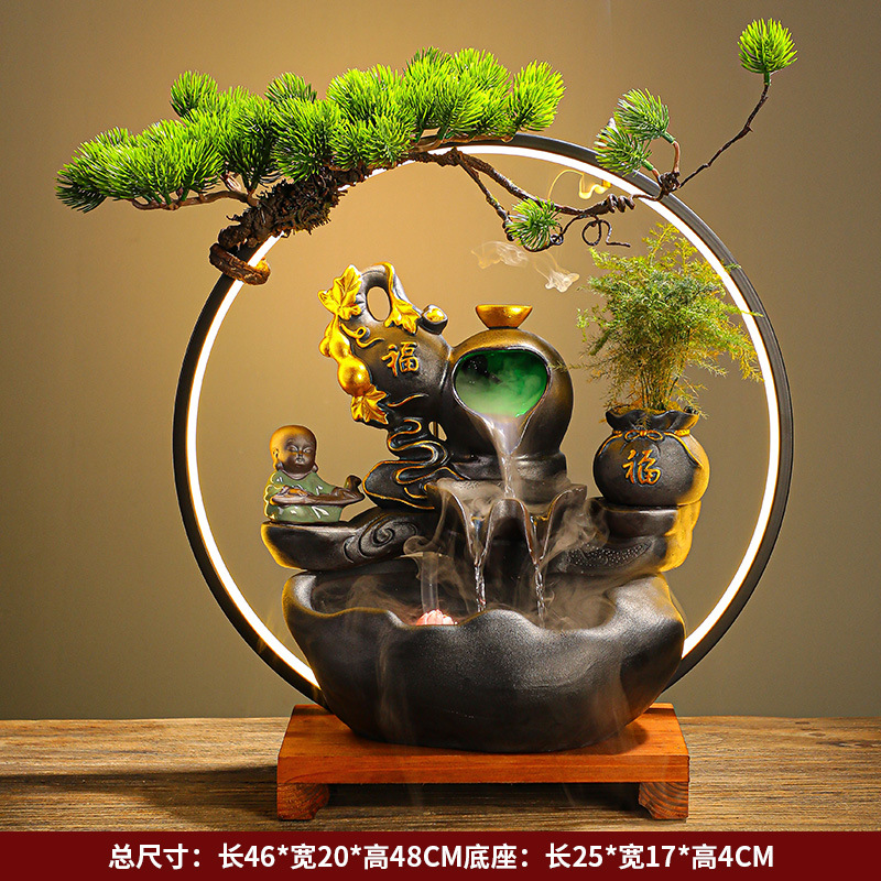 중국식 흐르는 물 포춘 분수 장식 크리에이티브 거실 베란다 사무실 가습기 집들이 신주택 개업 선물