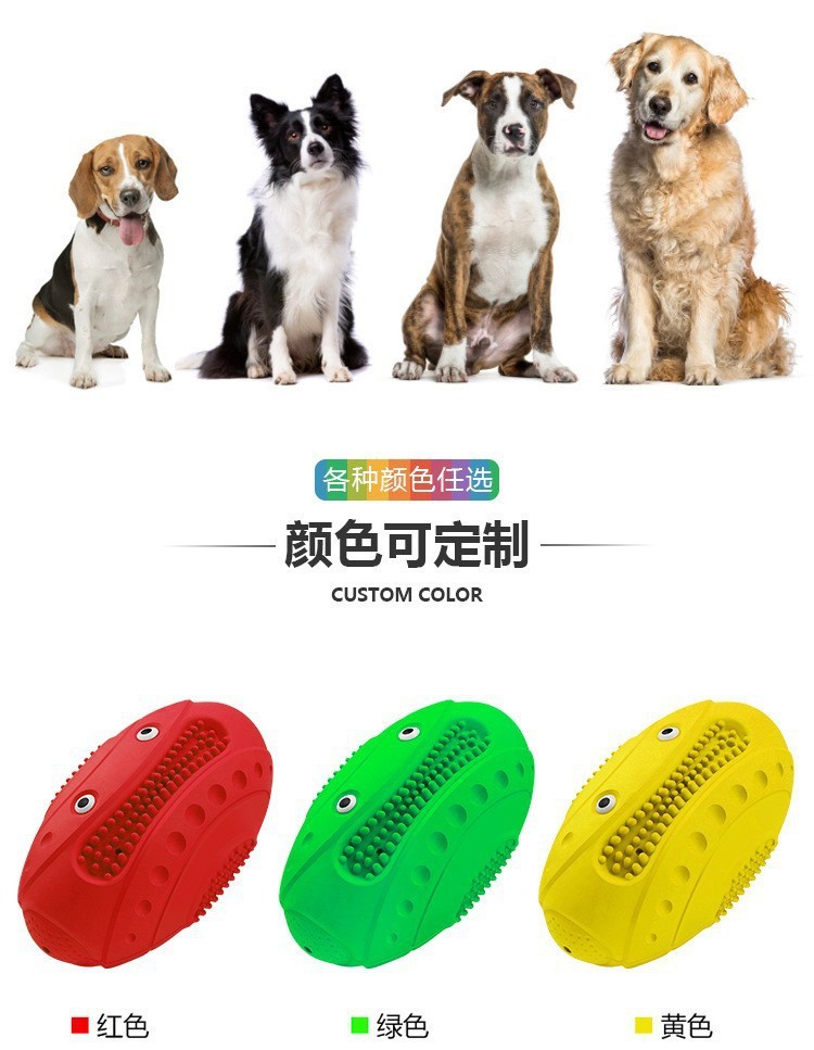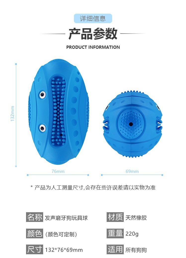 소리가 나는 애완동물 장난감, 럭비공 천연고무 치아연마 장난감, 물림 방지 및 치아 청소용 씹는 강아지 장난감