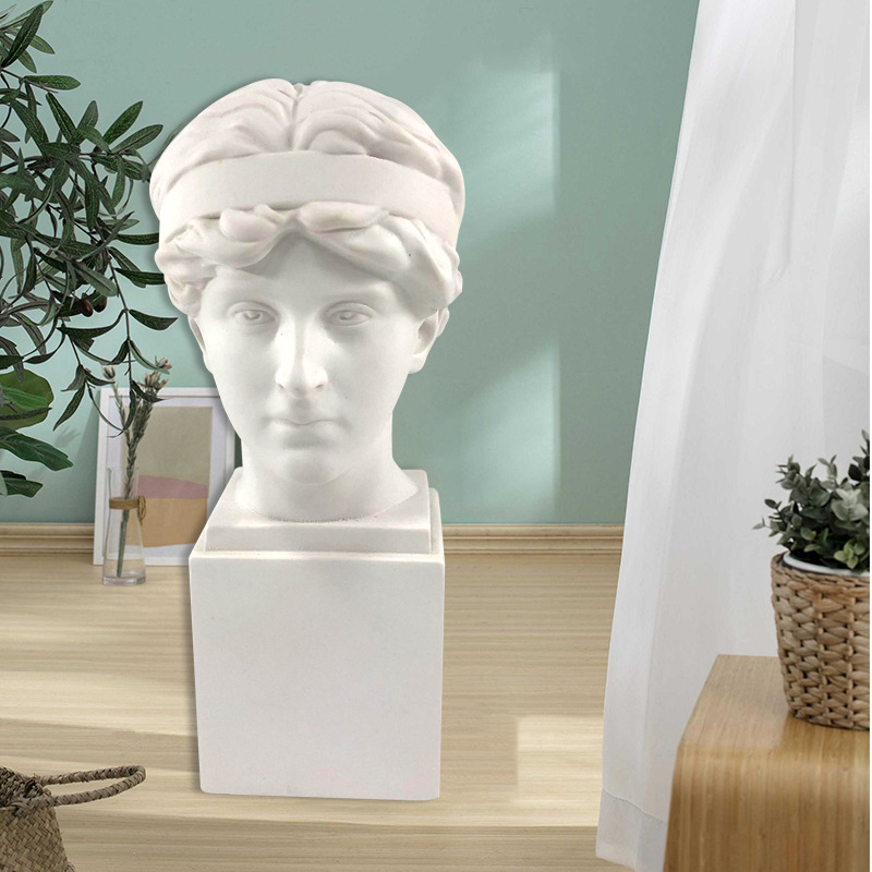 수지 모조 석고 머리 스카프 소녀의 머리 예술 동상 스타일 장식품 북유럽 홈 와인 캐비닛 장식