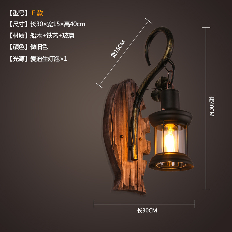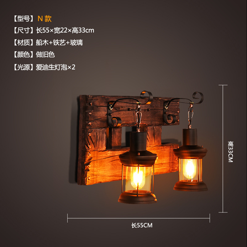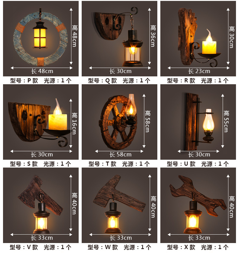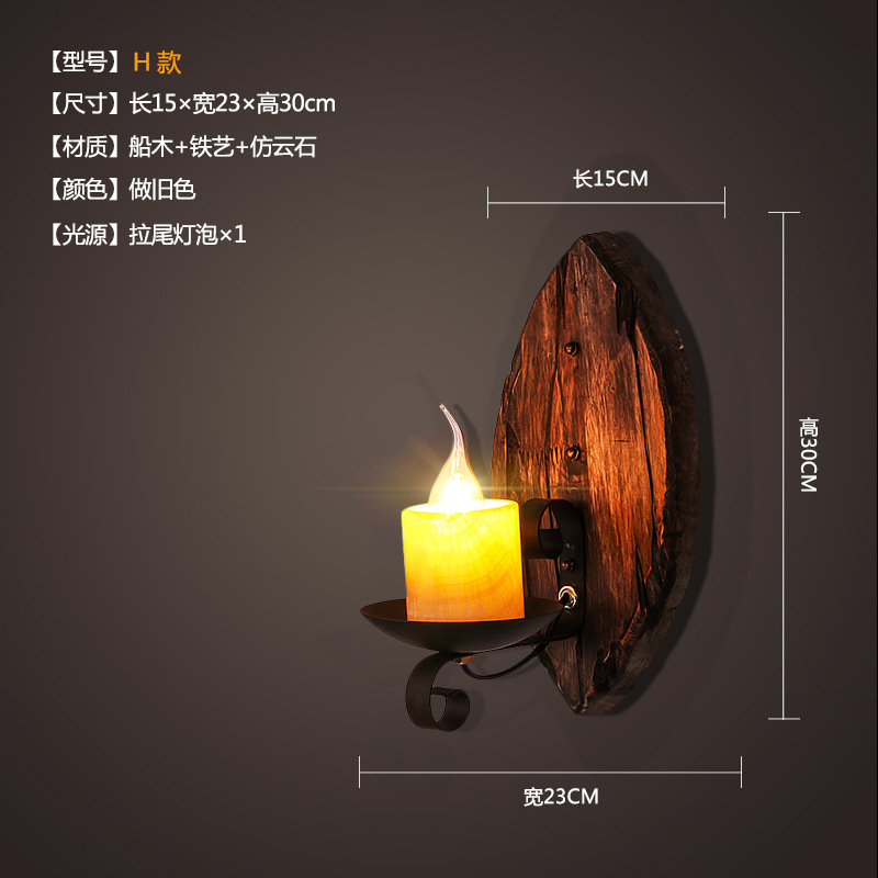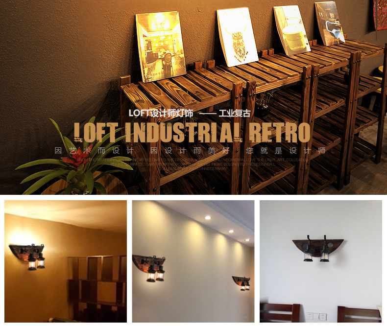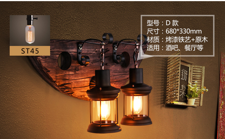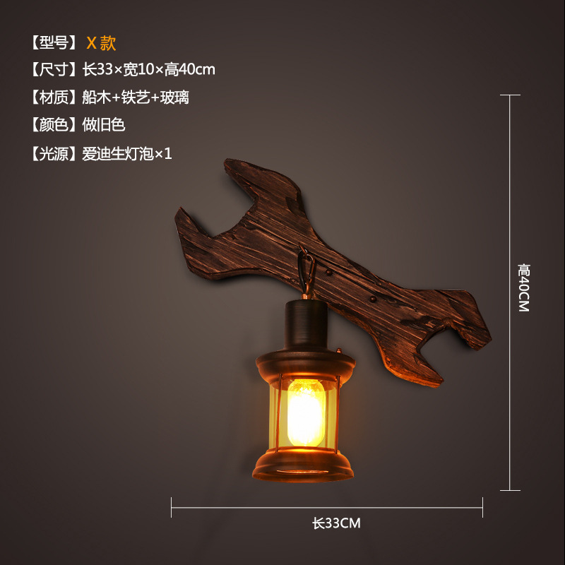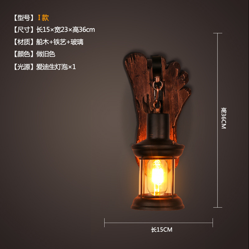 레트로 산업 바람 벽 램프 바 커피 레스토랑 미국 향수 복도 벽 장식 창조적 인 성격 단단한 나무 램프