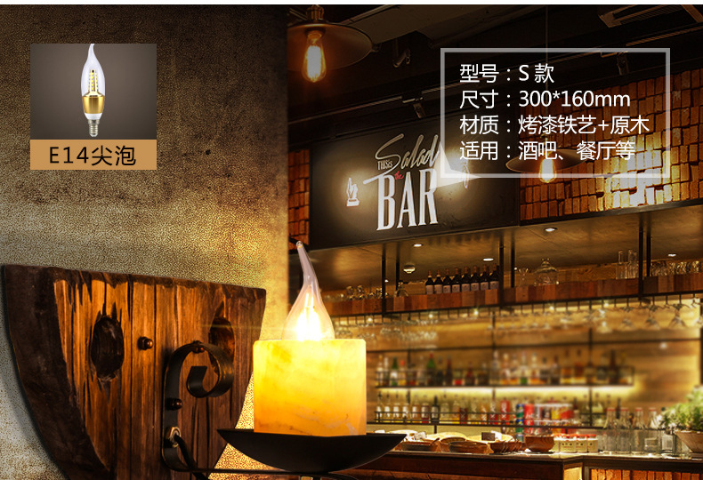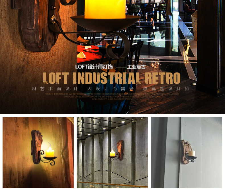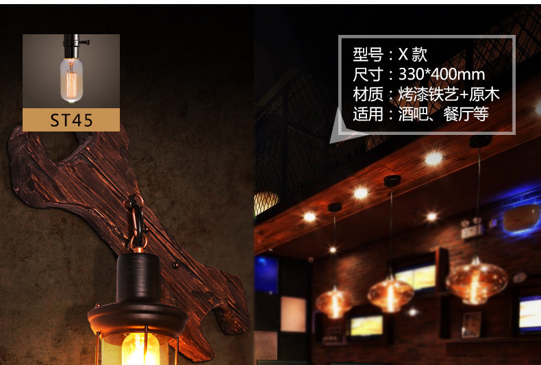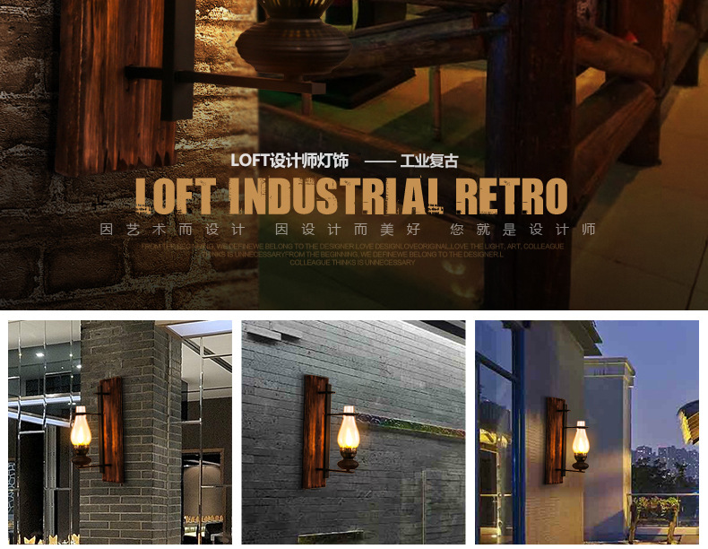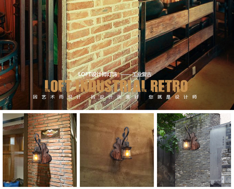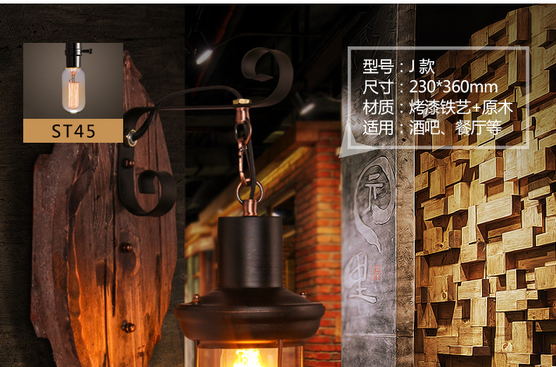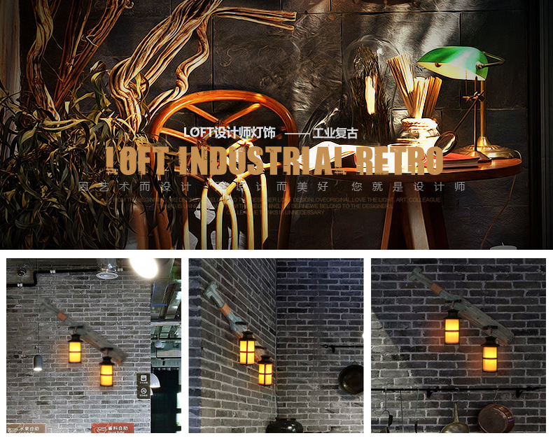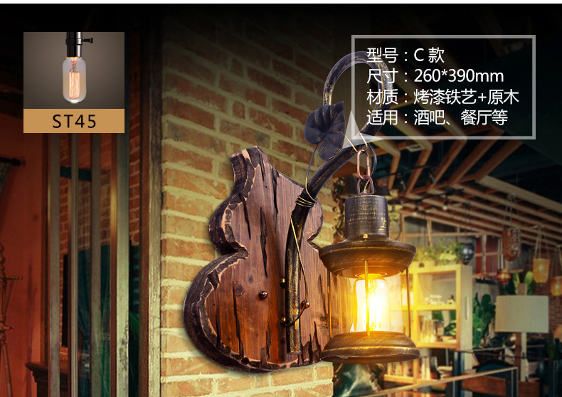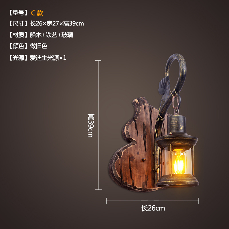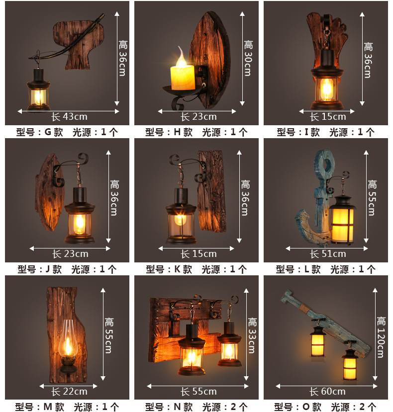 레트로 산업 바람 벽 램프 바 커피 레스토랑 미국 향수 복도 벽 장식 창조적 인 성격 단단한 나무 램프