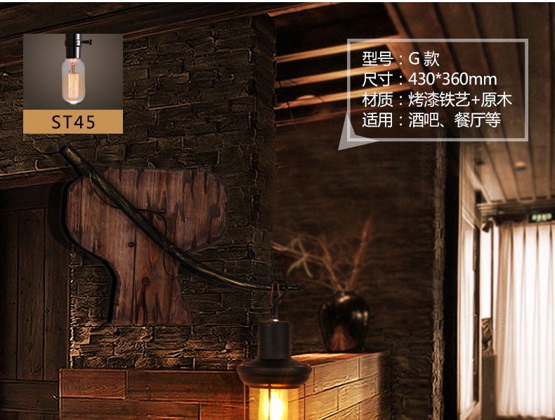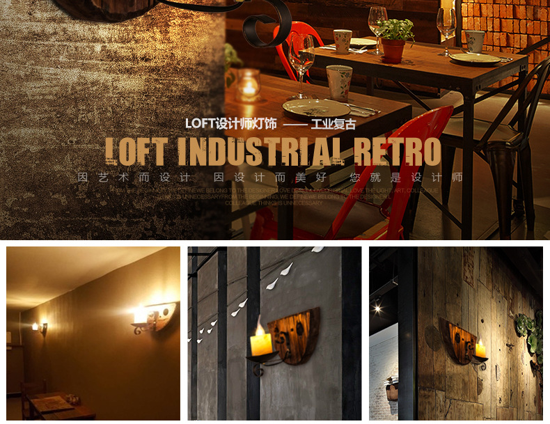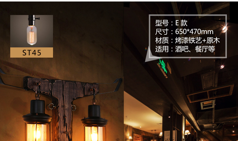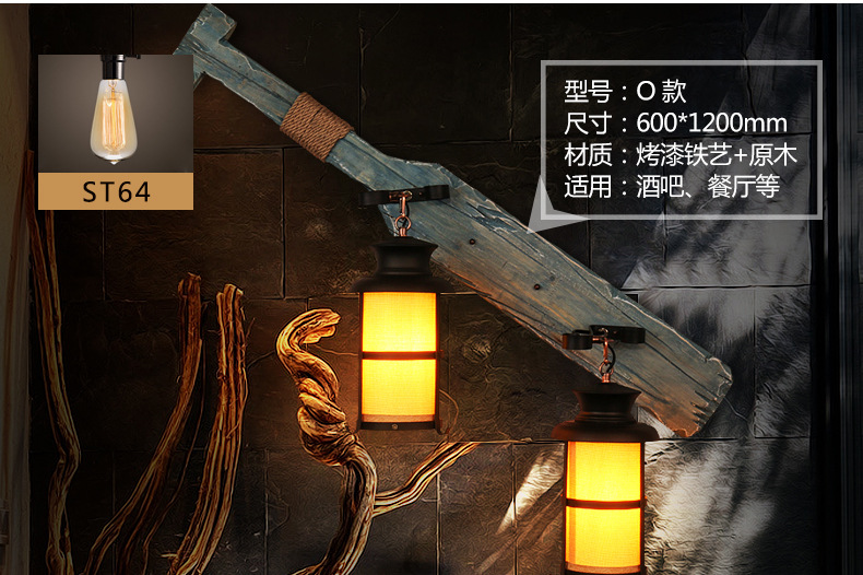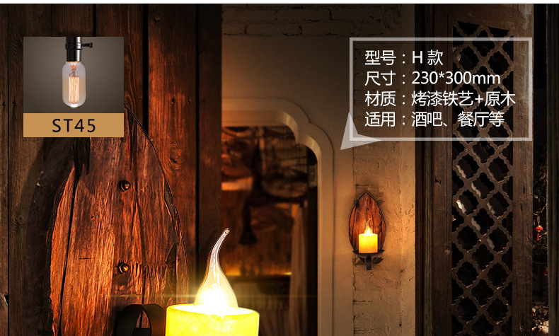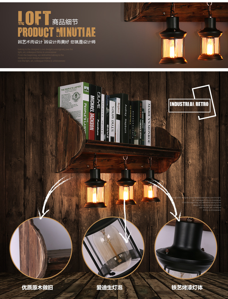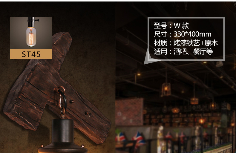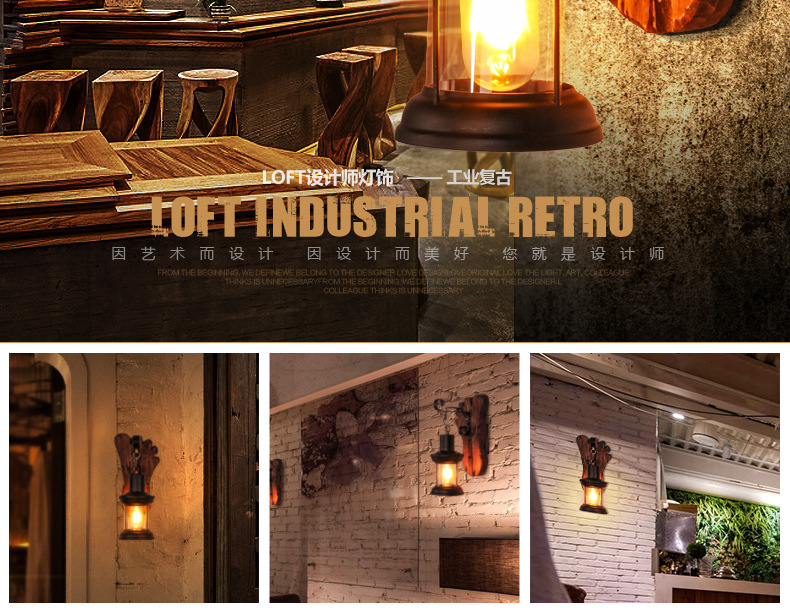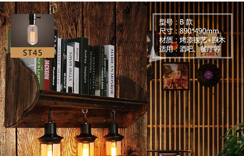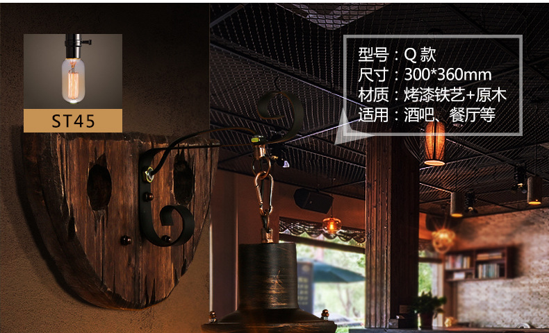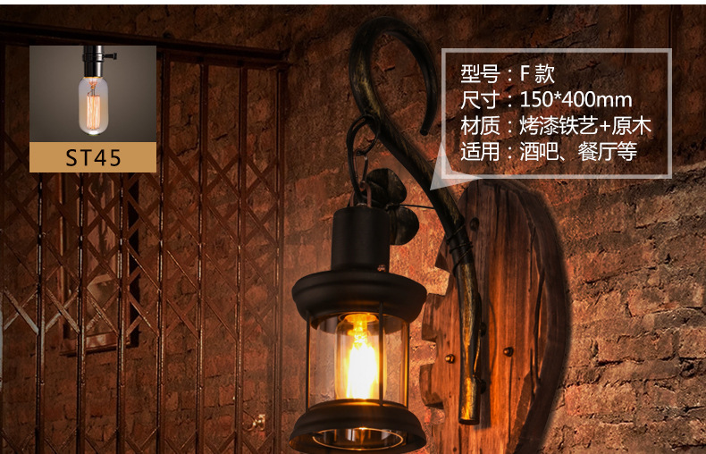 레트로 산업 바람 벽 램프 바 커피 레스토랑 미국 향수 복도 벽 장식 창조적 인 성격 단단한 나무 램프