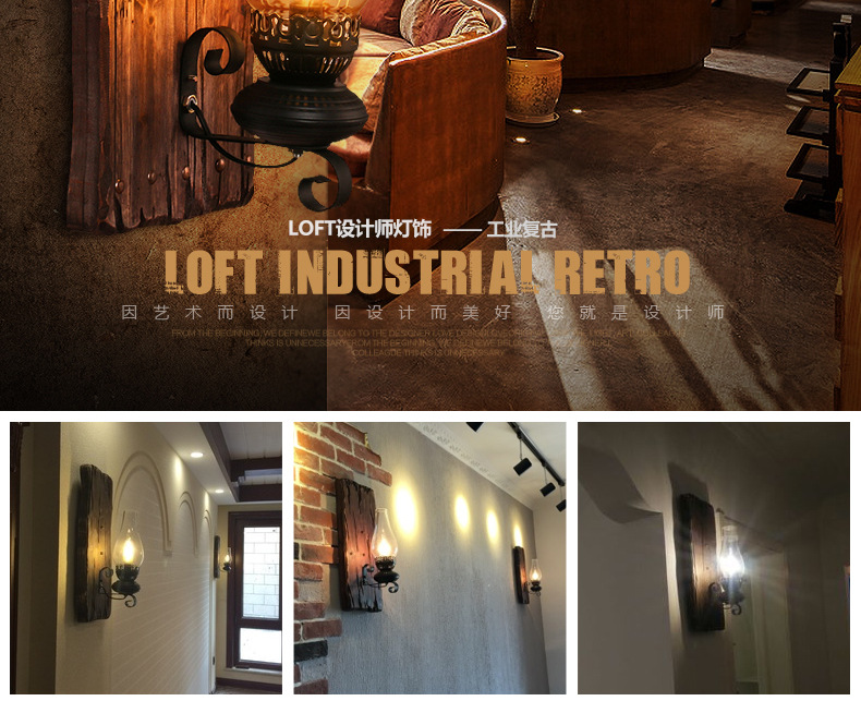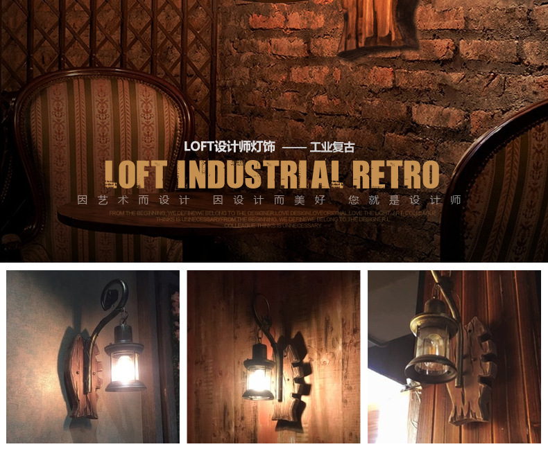 레트로 산업 바람 벽 램프 바 커피 레스토랑 미국 향수 복도 벽 장식 창조적 인 성격 단단한 나무 램프스토어 가기