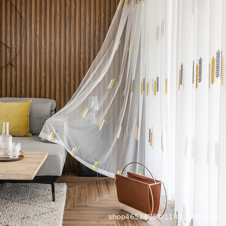목가적 모던 심플 윈드 거실 침실 플로어 커튼 윈도우 스크린 완성 자수 원사 공장 직판 전용 국경스토어 가기