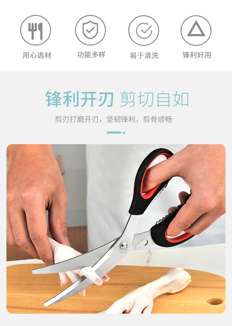 곡선 블레이드 주방 가위 한국 스테인레스 스틸 바베큐 가위 바베큐 가위 주방 가위 주방 닭 뼈 가위