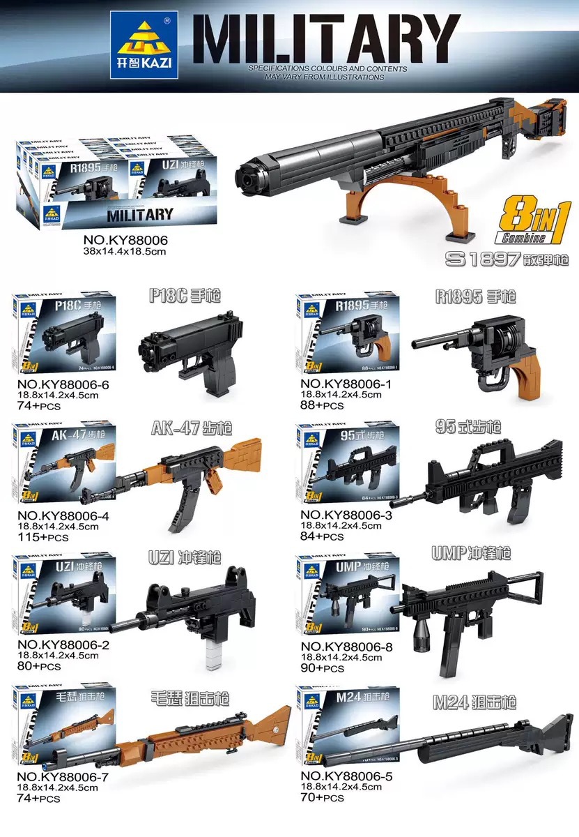 • 빌딩 블록 총 8종 합체형 대형 총(8의 배수로 전체 세트를 보내세요)