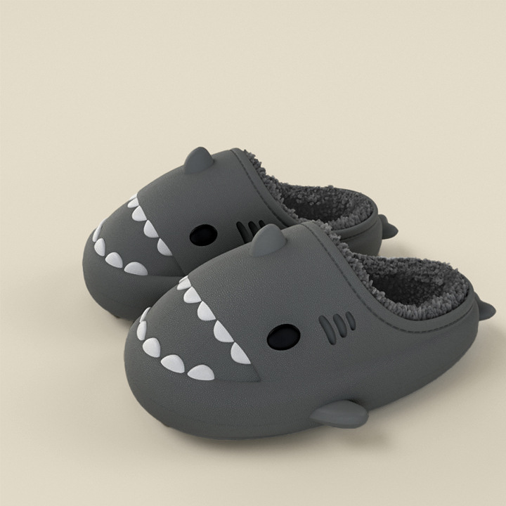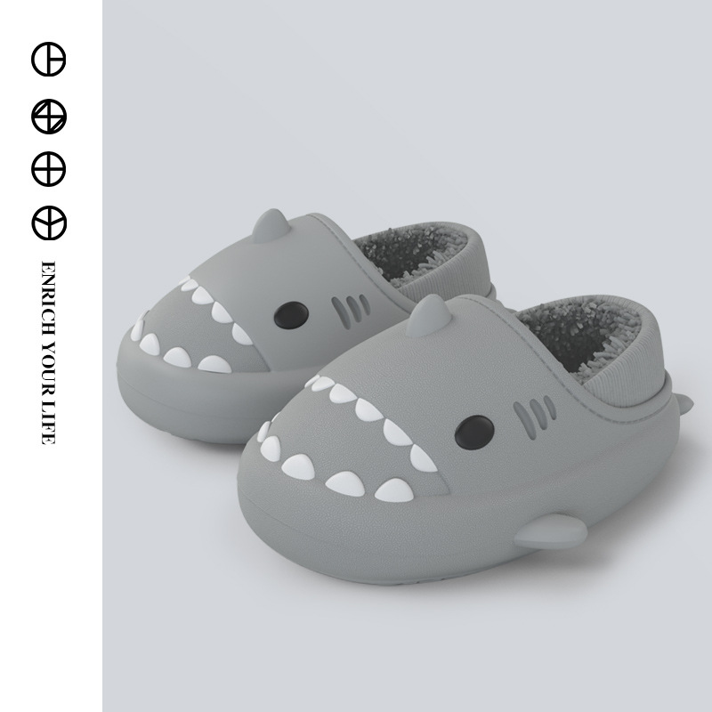 原创卡通鲨鱼拖鞋秋冬加绒版现货精准库存