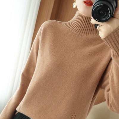 2023 가을과 겨울 새로운 하프 터틀넥 패션 스웨터 여성용 두꺼운 느슨한 모든 매치 단색 니트 베이스 셔츠 탑스토어 가기