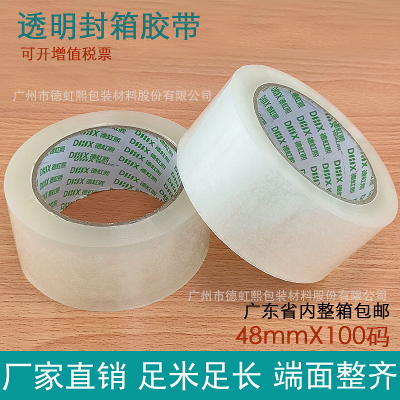 | 德虹熙48mm宽透明封箱打包带物流快递封口胶带100码省内整箱包邮 |