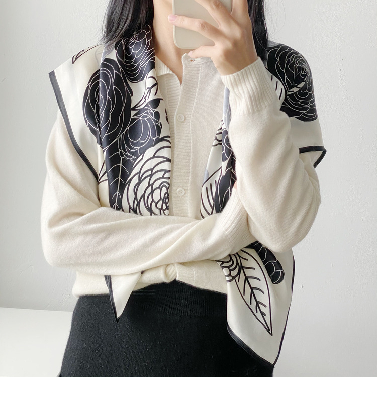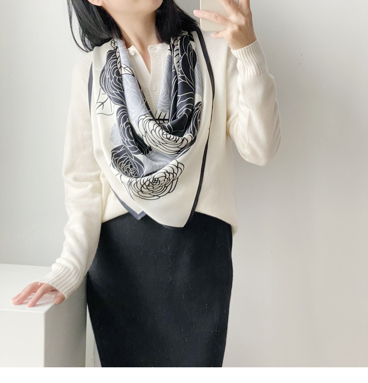 3 색 사용 가능한 가을 겨울 실크 스카프 대형 스퀘어 스카프 여성용 모든 매치 세련된 실크 스카프 뽕나무 실크 숄스토어 가기