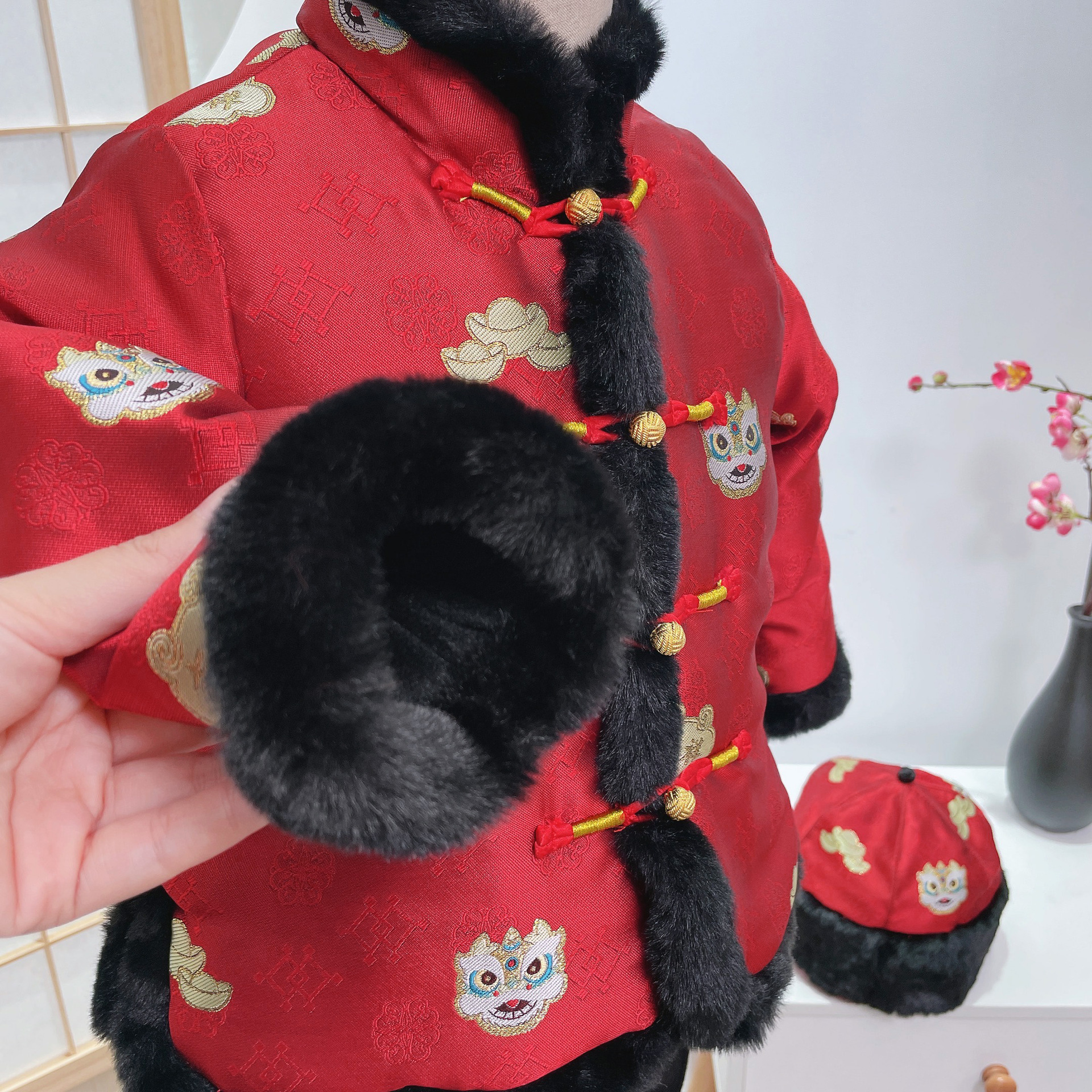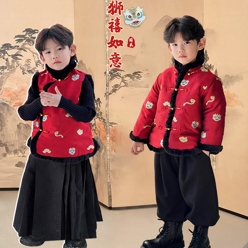 2023 소년 아기 새해 의류 어린이 탕 세트 Hanfu 아동 의류 겨울 중국 플러시 바람 조끼 축제 면 패딩 재킷스토어 가기