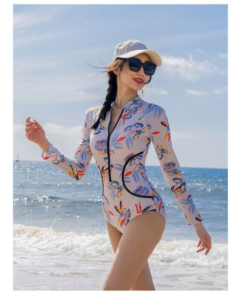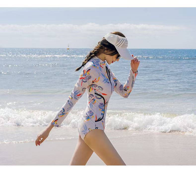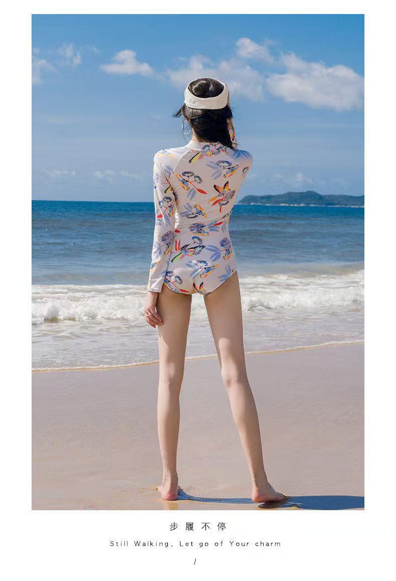 한국 새로운 수영복 여성용 2024 원피스 작은 가슴 긴 소매 배꼽 슬리밍 스노클링 온천 보수 수영복스토어 가기