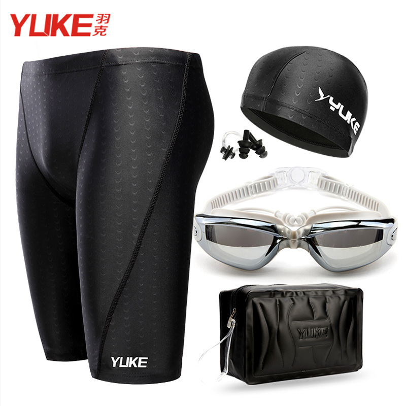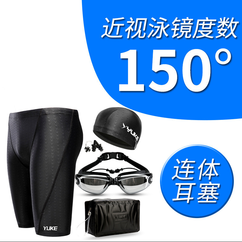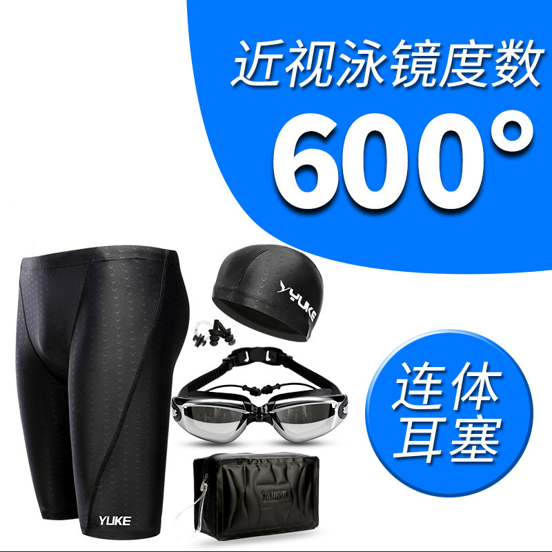 • 블랙 수영 트렁크 + 전기 도금 블랙 수영 고글 (5 피스 세트)