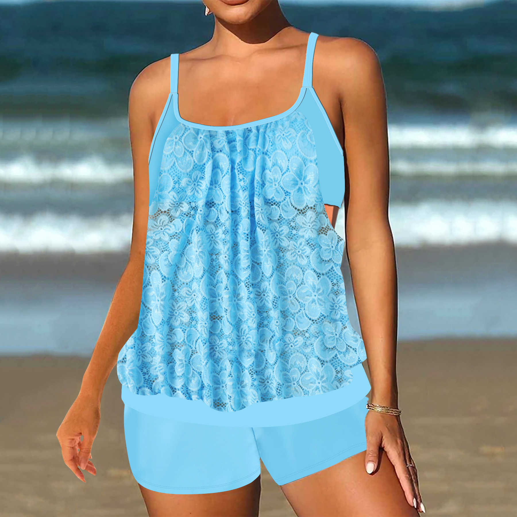 2024 유럽과 미국의 새로운 여성 분할 수영복 치마 플러스 사이즈 인쇄 비키니 여성 수영복