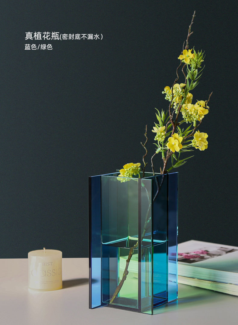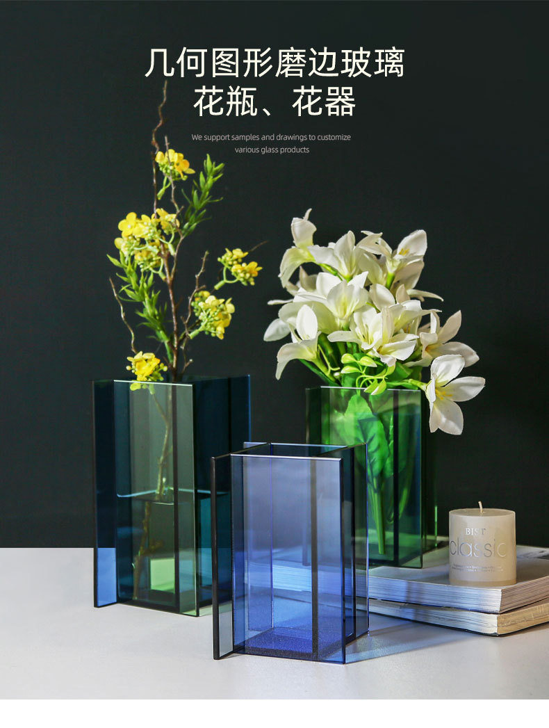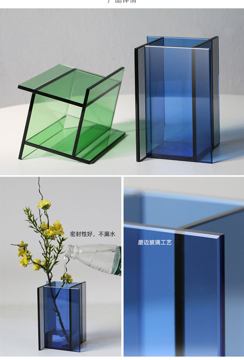 맞춤형 창의적인 수경 꽃병, 컬러 유리 에지 꽃병, 가정용 유럽 스타일 꽃병 장식품 가공스토어 가기