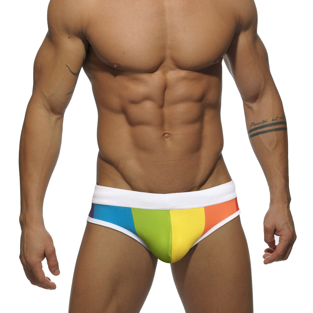 JESSBORN时尚性感三角彩虹男泳裤低腰速干专业游泳裤欧美泳衣跨境
