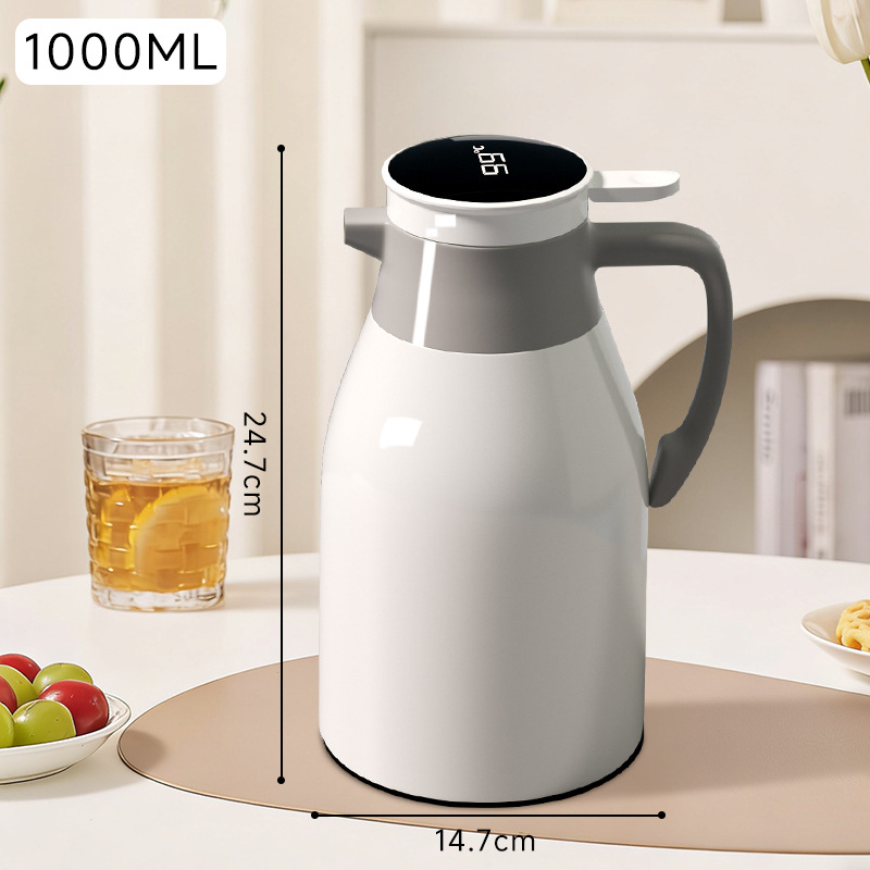 • 화이트 커피색 1.0L 디지털 표시 보온병 [업그레이드된 두꺼운 내피 + 72시간 장시간 보온]