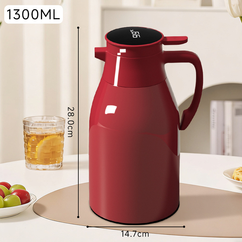 • 빨간색 1.3L 디지털 표시 보온병 [업그레이드된 두꺼운 내피 + 최대 72시간 보온 유지]