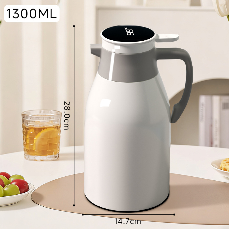 • 화이트 커피색 1.3L 디지털 표시 보온병 [업그레이드된 두꺼운 내피 + 최대 72시간 보온]