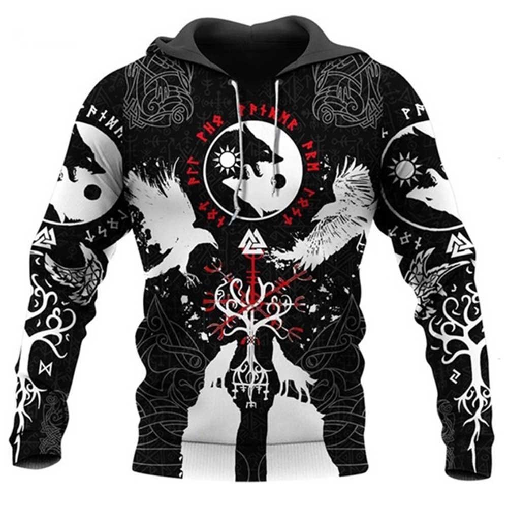 봄과 가을 새로운 패턴 문신 까마귀 3D 디지털 인쇄 남자의 개성 패션 느슨한 풀오버 스웨터스토어 가기