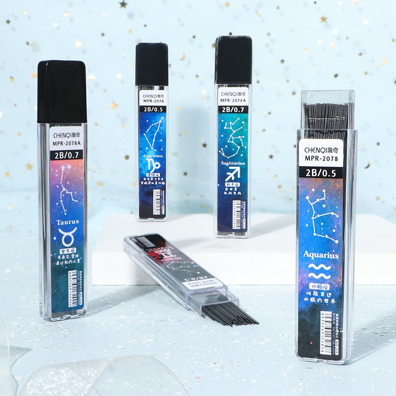 첸치 2B 자동 연필심 12별자리 대용량 블랙 레진 연필심 05m07m스토어 가기