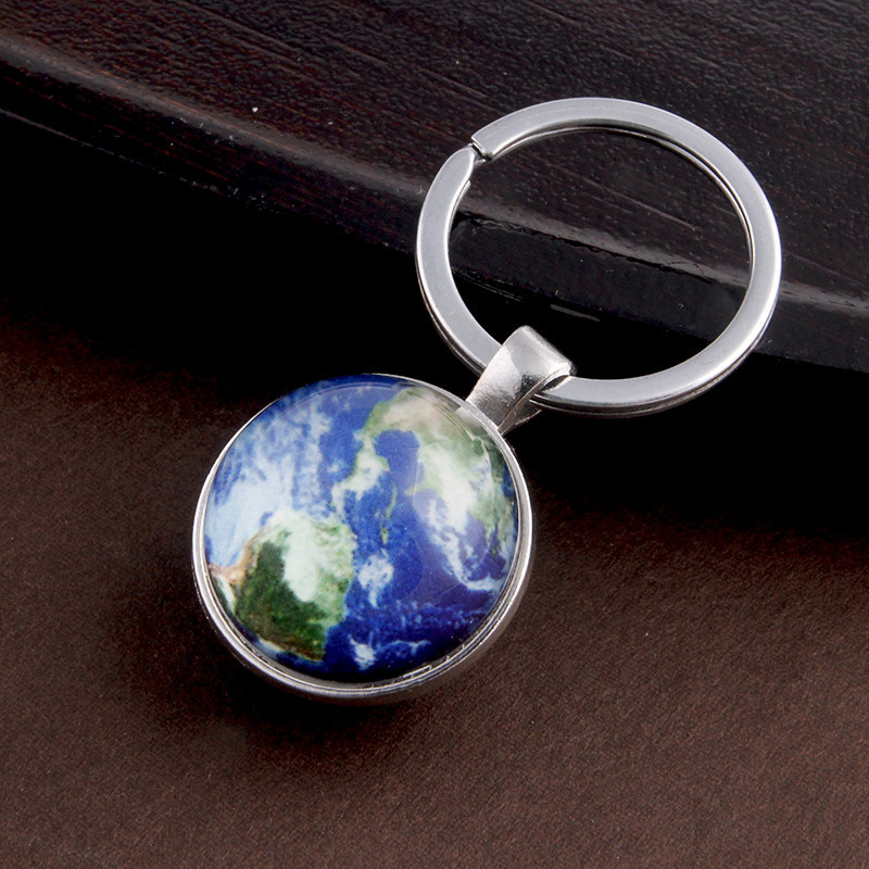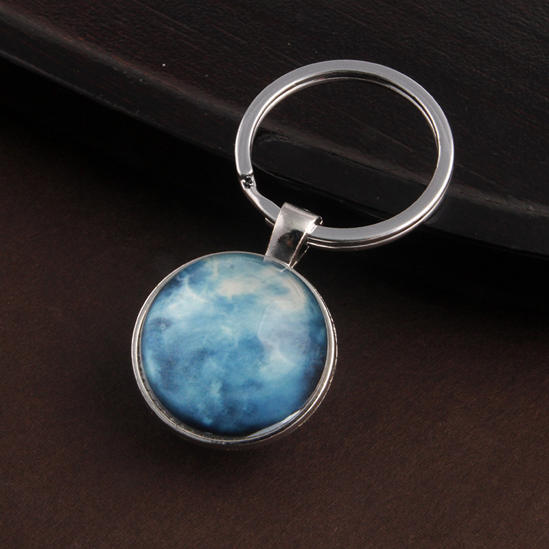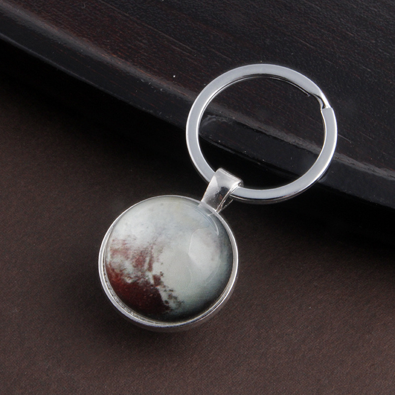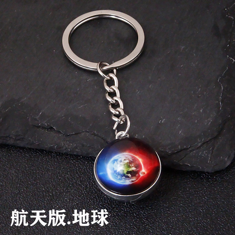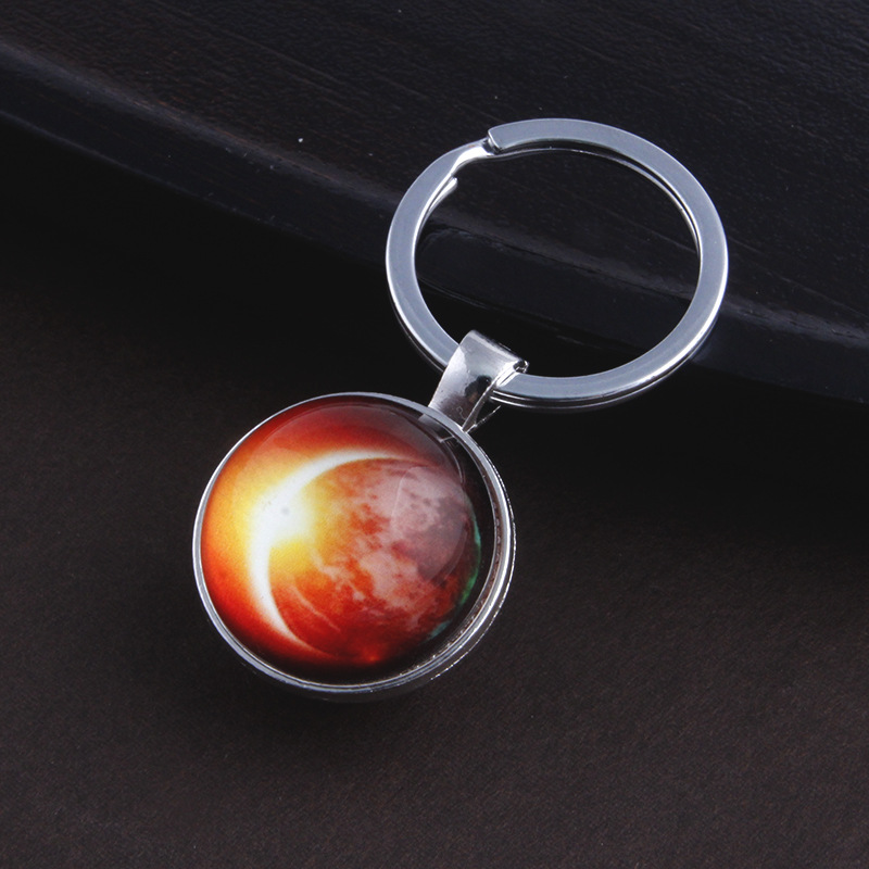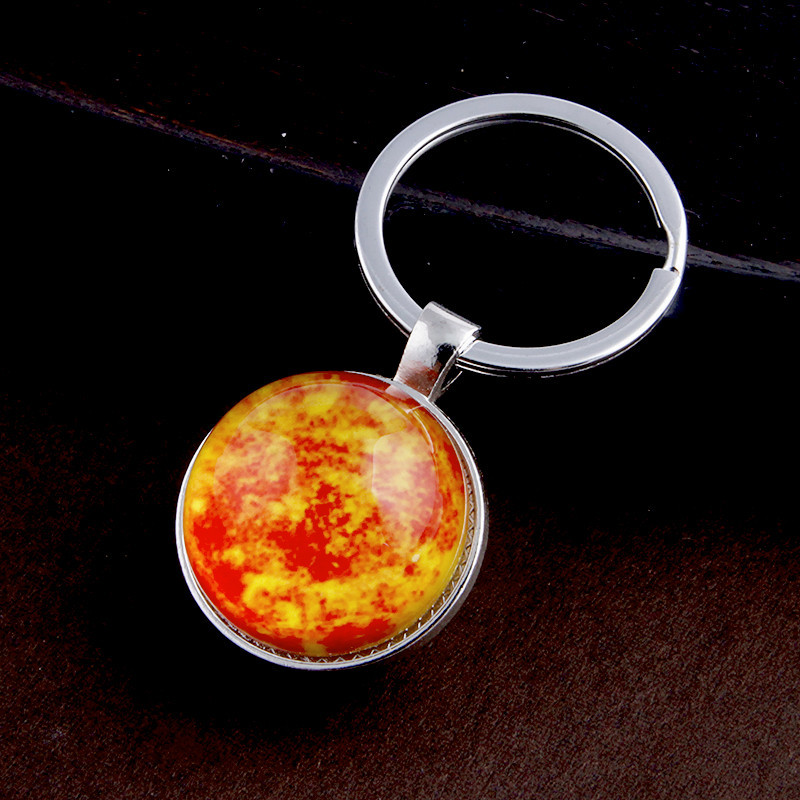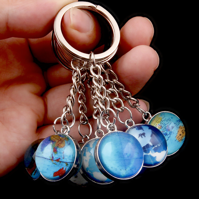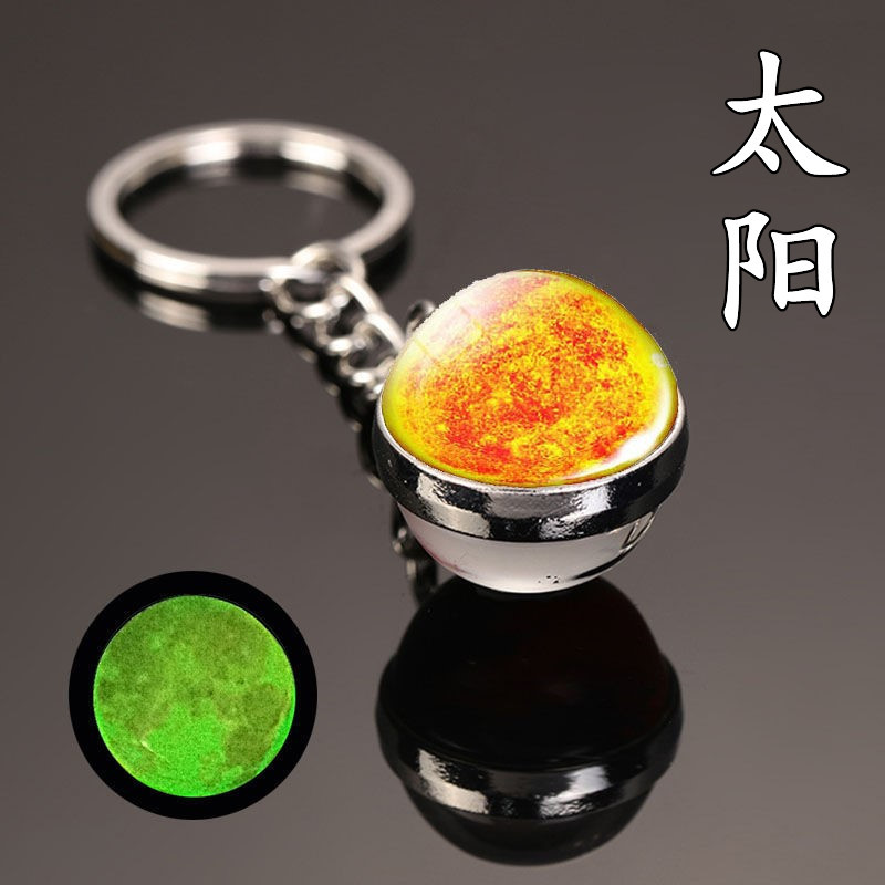 섬세한 빛나는 태양 9 행성 달 갤럭시 키 체인 라운드 양면 크리스탈 지구 키 체인